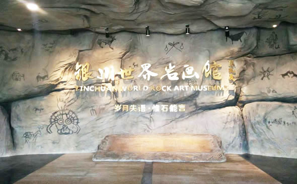 银川世界岩画馆占地面积4106平方米,原展厅面积2000平方米,是中国首个以岩画为题材的专题博物馆。馆内集中展示了60多个国家以及地区的岩画图片图录资料,不仅有岩画作品还展示了早期原始先民生活生产时的石器以及对于生殖崇拜的母神雕像,实现了游客不出国门就可以了解到世界各地的岩画作品。2016年11月起闭馆重装。