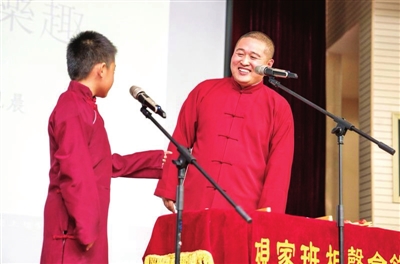 作为砚家班班主,师承天津相声名家李松岩先生的王砚晨,2016年凭《过年那些事》登上宁夏春晚,同年凭《驾考奇缘》闯入北京电视台王牌栏目《喜剧幽默大赛》的总决赛。讲座一开始,王砚晨先和一位小演员带来了一段相声《对春联》,现场气氛一下子被点燃,观众们哈哈大笑,大呼过瘾。