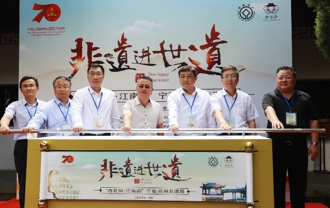 据了解,本次活动是为了贯彻落实《宁夏浙江重点领域合作会谈纪要》,围绕今年宁夏回族自治区党政代表团在江苏考察期间提出的加强相互交流合作、加快推进文旅融合新进程的具体思路,以“旅游+艺术+传媒”的新模式,以“非遗进世遗”的新形式共同举办“西北风江南韵”宁夏苏州非遗展系列活动。活动将持续一个月时间,期间重点展出宁夏和江苏两省区的精品非遗项目,宁夏贺兰砚、宁夏剪纸、宁夏花儿、宁夏小曲、秦腔等非遗项目与苏州昆曲、评弹、苏绣(发绣)、白洋湾山歌、苏州澄泥石雕刻砚台、苏州剪刻纸、古琴古萧、玻璃画等非遗项目对应交流展出,两地非遗项目同台亮相,两个“江南”非遗文化交相辉映,厚植文化沃土、彰显文化自信,以非遗文化为纽带,将宁夏和苏州两地文明互鉴推向新的高度。