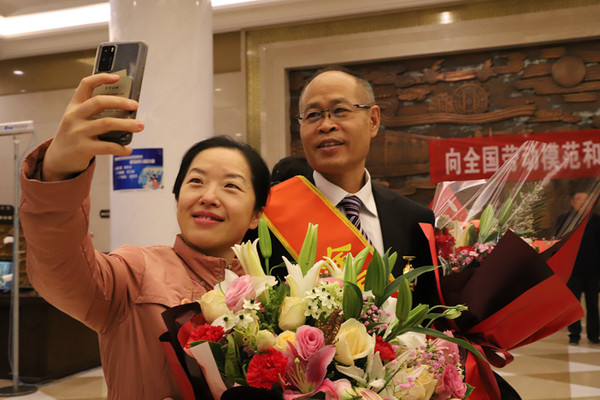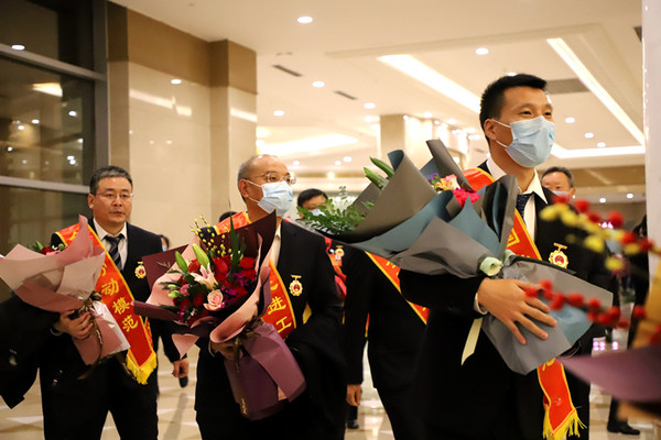 宁夏新闻网讯(记者 胡俊)向劳模学习,向劳模致敬!11月24日,2020年全国劳动模范和先进工作者表彰大会在北京人民大会堂隆重举行,宁夏36名全国劳动模范和先进工作者接受表彰。当日傍晚,劳模团返回银川,载誉归来。