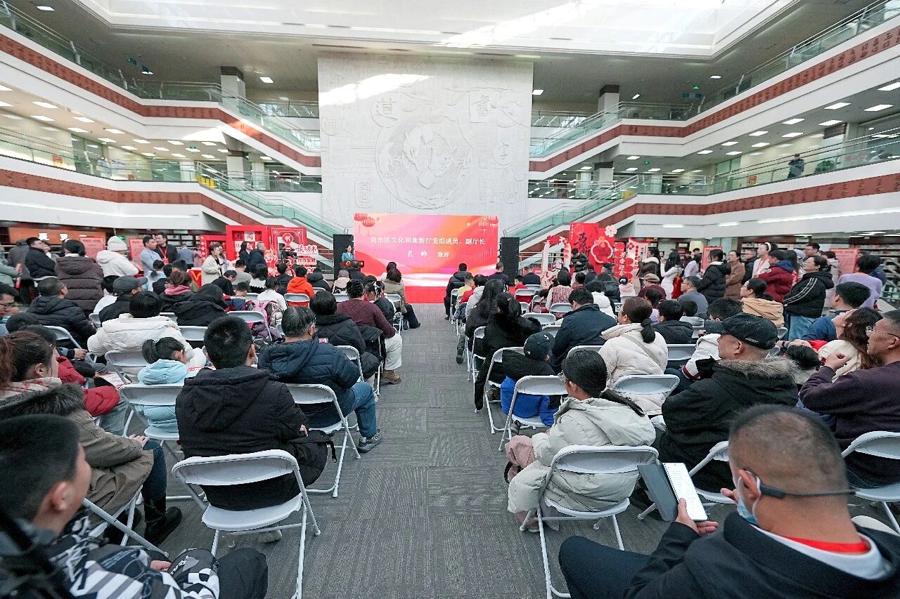 2月1日,由自治区文化和旅游厅指导,宁夏图书馆、宁夏图书馆学会联合主办的2026年“马跃新程 书香迎春・图书馆里过大年”系列群众文化主场活动正式启幕。本次活动恰逢《全民阅读促进条例》正式施行,为更好地宣传贯彻落实《条例》要求,本次活动紧紧围绕全民阅读主题,精心策划推出35项线上线下特色内容,涵盖文化市集、非遗传承、年俗体验、名家讲座、主题朗诵、新春展览、亲子共读等多元形式,着力打造沉浸式、互动式文化体验空间,为广大读者奉上一场兼具书香韵味与节日温情的新春文化盛宴。
