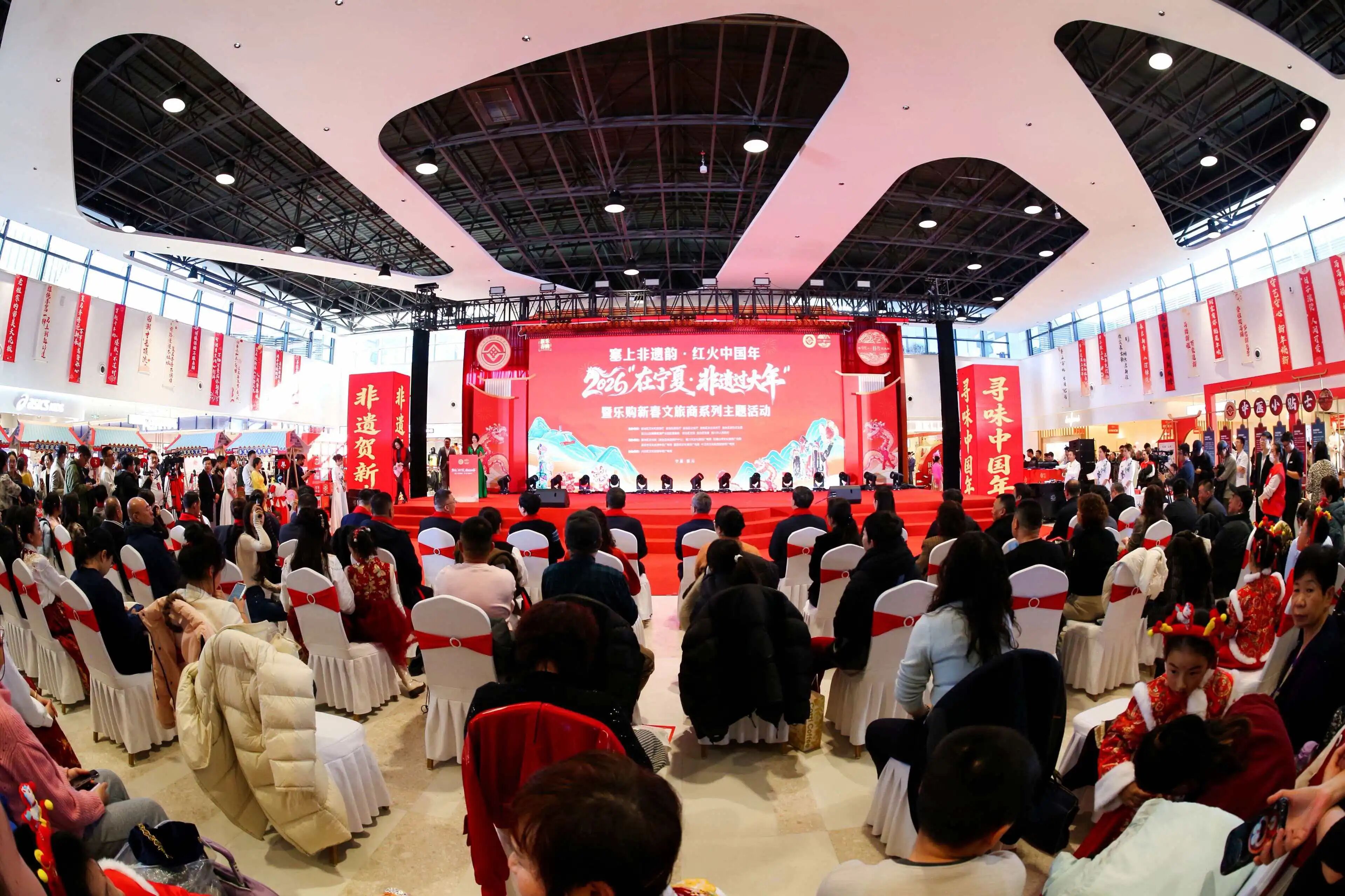 2026年2月7日,以“塞上非遗韵·红火中国年”为主题的2026年“在宁夏·非遗过大年”文旅系列活动在银川砂之船(奥莱)正式启幕。此次活动由自治区文化和旅游厅联合自治区商务厅、政协文史委、农业农村厅、贺兰山东麓葡萄酒产业园区管委会等多部门及银川市人民政府共同举办,标志着为期一个多月、覆盖全区的非遗新春盛宴全面拉开帷幕。