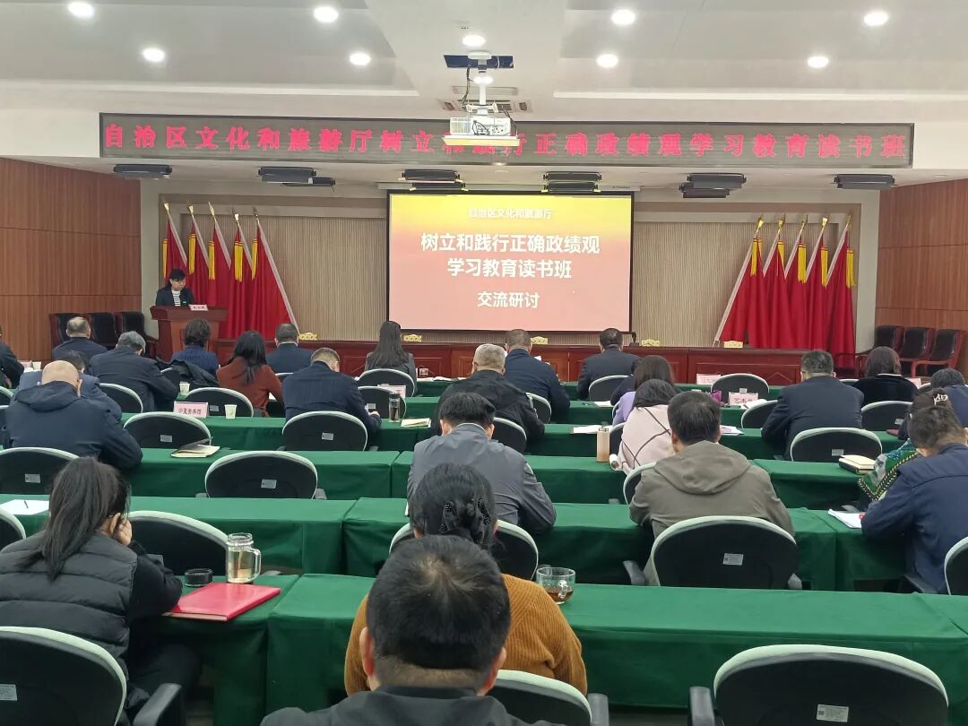 读书班坚持读原著、学原文、悟原理,系统学习《习近平关于树立和践行正确政绩观论述摘编》,深入学习习近平总书记在党的二十届四中全会、中央经济工作会议、二十届中央纪委五次全会、省部级主要领导干部专题研讨班上的重要讲话精神,深刻领悟正确政绩观的核心要义与实践要求;重温习近平总书记三次考察宁夏重要讲话精神,进一步明晰文旅发展方向路径;组织观看中央党校刘余莉教授专题讲座,通过权威辅导深化理解认识;深入研读“十五五”规划建议、自治区第十三次党代会和历次全会精神,确保党中央和自治区决策部署在文旅系统一贯到底。交流研讨突出文旅主责主业,厅领导班子成员带头发言,厅机关及直属单位9名处级领导干部结合文旅发展规划编制、文物保护利用、文艺事业健康发展、公共文化服务效能提升、文旅产业提质增效、文旅行业安全发展、文化市场监管执法等重点领域,谈认识、查不足、明方向、定举措,切实将正确政绩观融入文旅工作全过程,真正把学习成果转化为推动宁夏文化和旅游高质量发展的务实行动。