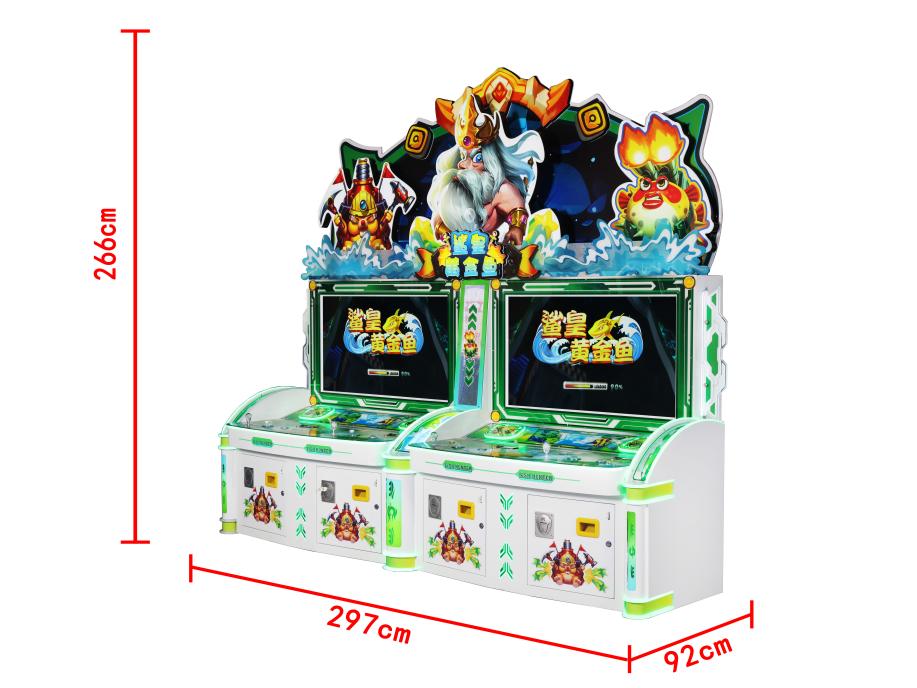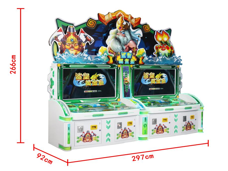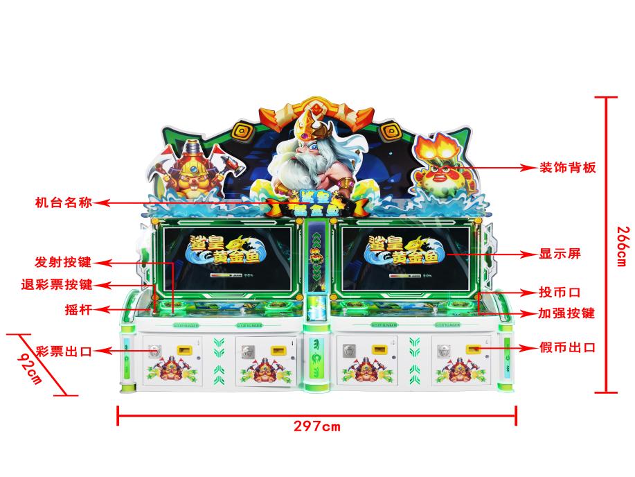 游戏内容简介 | 《鲨皇黄金鱼(立式4人)》是为大众娱乐而设计的一款支持4人玩的游戏游艺彩票机,本机支持合法合规的管理系统,也可通过打开微信或支付宝扫一扫管理系统卡头二维码/屏幕二维码/实体二维码扫码支付投币或投入实体游戏代币获得对应的能量积分子弹数后玩家即可手动启动游戏。本机适用于网咖、竞技馆、动漫城、商超、台球俱乐部等符合经营许可的使用场所。本游戏是以多场景+海洋生物+异兽+道具为题材(比如:金色大龙虾,蝴蝶鱼,八爪鱼,变色灯笼鱼,红鲤鱼,斑斓鱼,变色鲸鱼,变色旗鱼,变,魔鬼鱼,小丑鱼,飞鱼,鲷鱼,鲽鱼,乌贼,河鲀,旗鱼,海龟,灯笼鱼,蝠魟鱼,锯齿鲨,鲨鱼,深水炸弹,幸运转轮,猎鱼任务,超级黄金鱼,彩虹鱼,彩虹鲨)等等,由多种不同风格的场景,众多各具特色的海洋生物+异兽+道具身上蕴藏着无尽的秘密,等待着勇敢的玩家深入探索,体验一场视觉盛宴。在射击过程中击杀金色大龙虾、超级黄金鱼等可以获得超级大奖,让玩家获得丰厚的彩票/能量积分奖励。同时在游戏中,玩家在射击任意海洋生物+异兽+道具时,会消耗能量积分子弹数,击杀任何的海洋生物+异兽+道具都会得到该海洋生物+异兽+道具相对应的彩票/能量积分奖励,当玩家能量积分子弹数为零时则游戏结束。同时玩家可用获得的能量积分手动选择退实物彩票/电子彩票/积分,可到店面吧台用彩票/电子彩票/积分兑换精美礼品,也可以链接到电子商城上选择心仪的礼品使用彩票/电子彩票/能量积分兑换,填写正确的收货地址,商城将精美礼品通过快递送达。同时为了“顺应“互联网+”发展趋势,鼓励娱乐场所与互联网结合发展,实现场内场外、线上线下互动,增强娱乐场所体验式服务”的要求,本设备可以通过物联网技术把实体游戏游艺设备的游戏内容推送到移动端供客人游玩,仅限于从实体设备所在的公众号、小程序、APP及网络推广平台入口进入的玩家游玩。 | ||