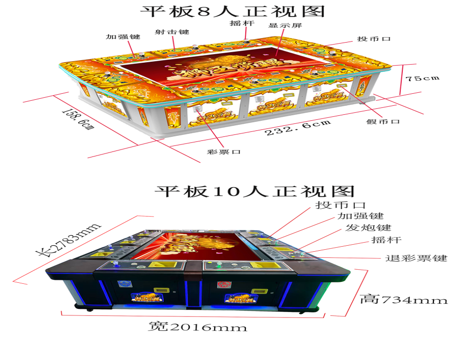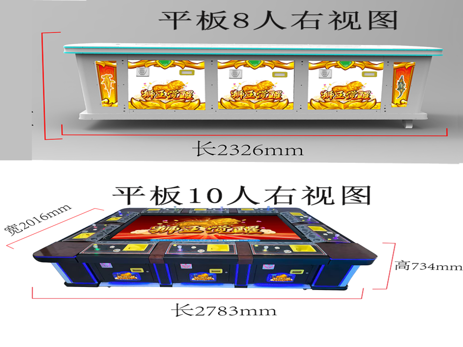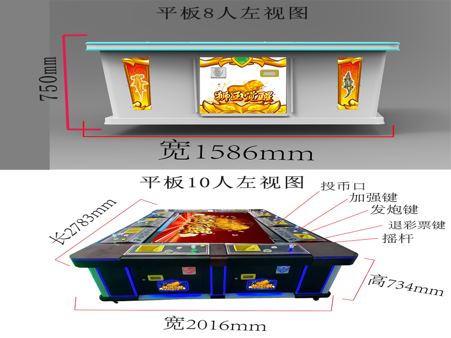 游戏内容简介 | “狮王觉醒(平板)”是一款以狮子为题材元素精心设计研发、以神秘深邃的深海为宏大背景,其精心打造的游艺娱乐设备。它的外观堪称豪华,金属机箱采用全烤漆工艺,质感非凡,搭配上炫丽迷人的灯光效果让人一眼望去便被深深吸引。进入游戏,里面有众多特色鲜明的小鱼群,它们形态各异,为游戏增添了无尽的生机与活力,让玩家仿佛置身于神秘奇幻的海底世界。玩家在游戏中作为猎人的角色,可射击多种海洋鱼类,包括金鱼,银鲨鱼鳄鱼,火龙珠,金狮子等。游戏中的海洋生物不仅形态各异,而且各自拥有独特的功能与小游戏。部分生物装备有能量光圈,一旦捕获,便能成功炸掉光圈中同类型鱼种。有的则携带能量局部炸弹,捕捞成功时触发局部反应,将周边海洋生物一网打尽;更有生物携带有特殊功能,捕捞成功后获得天降财神大奖,带来震撼的视觉冲击与游戏快感。玩家在游戏中通过操控摇杆,精确控制渔网的发射方向,每一次成功捕获都伴随着彩票奖励和喜悦。在享受游戏乐趣的同时,玩家还能深入了解各种海洋生物的特性与习性,仿佛真的置身于那片蓝的海洋之中,与这些神奇的生物共同探索海洋的奥秘。 | ||