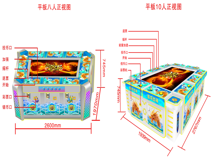 游戏内容简介 | <<鲛龙出海(平板)>>是为大众娱乐而设计的一款支持多人玩的游戏游艺彩票机,本机支持合法合规的管理系统,也可通过打开微信或支付宝扫一扫管理系统卡头二维码/屏幕二维码/实体二维码扫码支付投币或投入实体游戏代币获得对应的能量积分子弹数后玩家即可手动启动游戏。本机适用于网咖、竞技馆、动漫城、商超、台球俱乐部等符合经营许可的使用场所。本游戏程序算法柔和,跌宕起伏,画面4K高清效果,物种栩栩如生,如游大海,鱼类动作震撼感强,结合休闲与策略,让用户沉浸海洋探险,体验探索的乐趣与智慧挑战。游戏内容和奖项丰富,使得玩家欲罢不能,爱不释手!同时让你身感畅游海底世界、尽享探索乐趣的休闲竞技游戏,软件功能包含:开启探险、多重炮台选择、辅助道具使用、每日活跃任务、炮级强化进阶、宝藏额外分红、神秘商店探索、系统设置以及安全退出等模块,助你体验魔幻深海探索的无限快感与收获。技术特点: 采用高清3D技术,打造真实海底世界场景,支持多人在线互动探索,提升沉浸式夺宝体验,主要有全屏超级炸弹!电磁炮、神力炮、闪电连锁、自动发炮,彩金画面炫酷,同时全屏翻倍彩金多、奖励高。玩家可用获得的能量积分手动选择退实物彩票/电子彩票/积分,可到店面吧台用彩票/电子彩票/积分兑换精美礼品,玩家也可以选择退电子彩票/能量积分直接返还到玩家手机上,也可以用手机扫卡头/屏幕二维码领取电子彩票/能量积分,都可以链接到电子商城上选择心仪的礼品使用彩票/电子彩票/能量积分兑换,填写正确的收货地址,商城将精美礼品通过快递送达。同时为了“顺应“互联网+”发展趋势,鼓励娱乐场所与互联网结合发展,实现场内场外、线上线下互动,增强娱乐场所体验式服务”的要求,本设备可以通过物联网技术把实体游戏游艺设备的游戏内容推送到移动端供客人游玩,仅限于从实体设备所在的公众号、小程序、APP及网络推广平台入口进入的玩游玩家。 | ||