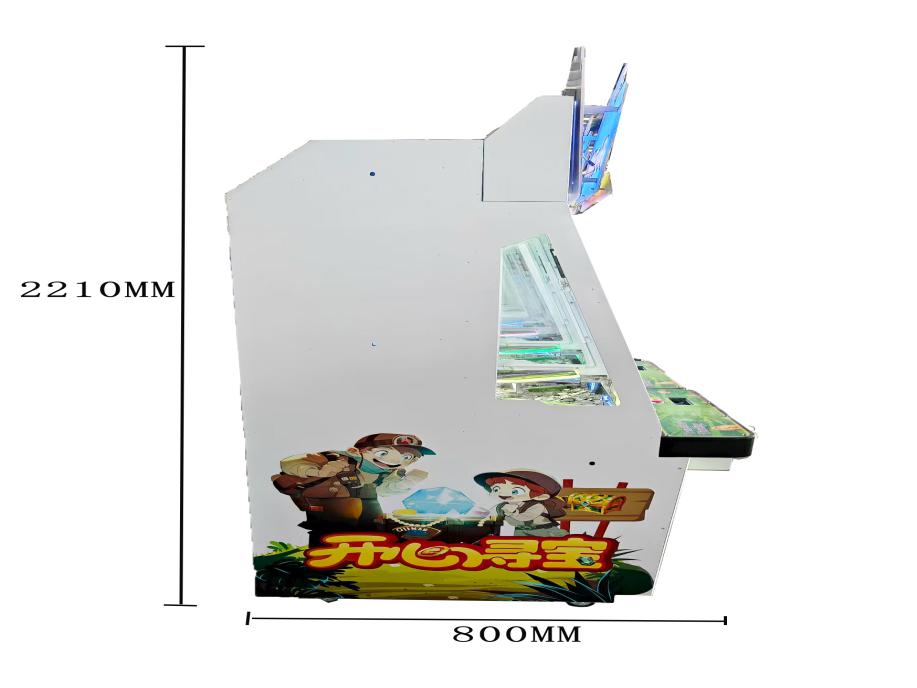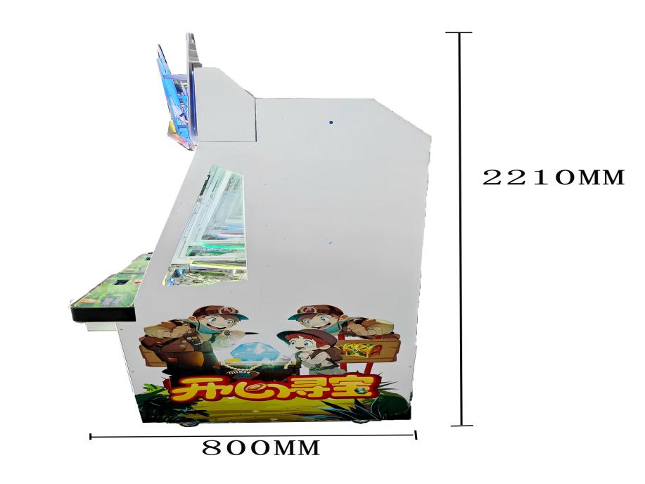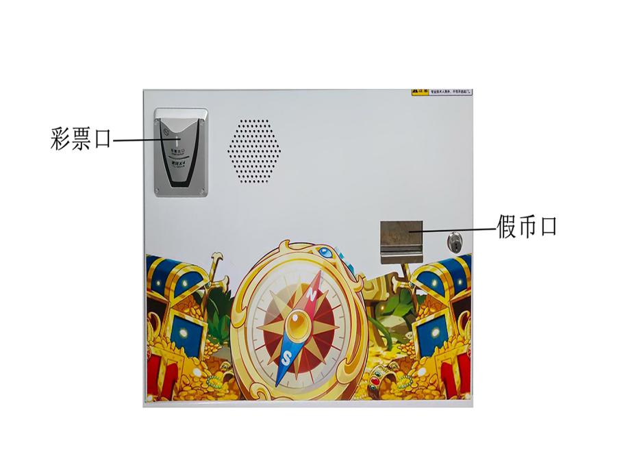 游戏内容简介 | 《开心寻宝(立式4人)》是为大众娱乐而设计的一款以推推乐为主题的推币类游戏游艺娱乐设备,本机支持合法合规的管理系统,也可通过打开微信或支付宝扫一扫管理系统卡头二维码/屏幕二维码/实体二维码扫码支付投币或投入实体游戏代币后玩家即可开始游戏。本机适用于网咖、竞技馆、动漫城、商超、台球俱乐部等符合经营许可的使用场所。这款游艺设备结合融入了很多海盗经典道具及人物角色;如经典的,珠宝箱,黄金,剪刀,锤子,蚌珠,放大镜,绿宝石,神水,开心70秒,胡子大叔,小游戏:连线奖,一推到底,开心70秒,小玛丽,叠叠乐,JP1,JP2,JP3,全盘奖等等。这些道具不仅仅是物品,更是决战海盗船展现魅力,创造奇迹的重要工具,他们共同构成了一个充满魅力和神秘的海盗船世界。让游戏玩家仿佛置身于这个神秘的海盗船世界之中,玩家通过投入游戏代币的时间和雨刷器左右摆动的频率,来控制游戏代币从机器最顶端掉落到堆盘的时间节点,并判断游戏代币掉落到左右移动的幸运通道口的机会。当游戏代币落入幸运通道,将获得更多从机器最顶端的落币奖励到堆盘;如果游戏代币直接掉落到堆盘时,则堆盘推动游戏代币前进和叠加,当游戏代币滑落堆盘时,玩家可获得彩票奖励。同时玩家可用获得的彩票奖励手动选择退实物彩票/电子彩票,可到店面吧台用彩票/电子彩票兑换精美礼品,也可以链接到电子商城上选择心仪的礼品使用彩票/电子彩票兑换,填写正确的收货地址,商城将精美礼品通过快递送达。同时为了响应“互联网+”发展趋势,鼓励娱乐场所与互联网结合发展,实现场内场外、线上线下互动,增强娱乐场所体验式服务”的要求,本设备可以通过物联网技术把实体游戏游艺设备的游戏内容推送到移动端供客人游玩,仅限于从实体设备所在的公众号、小程序、APP及网络推广平台入口进入的玩家游玩。 | ||