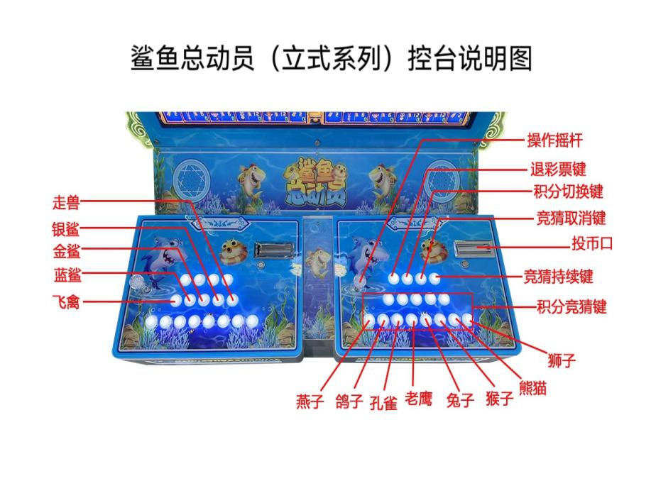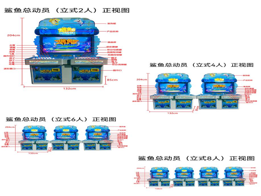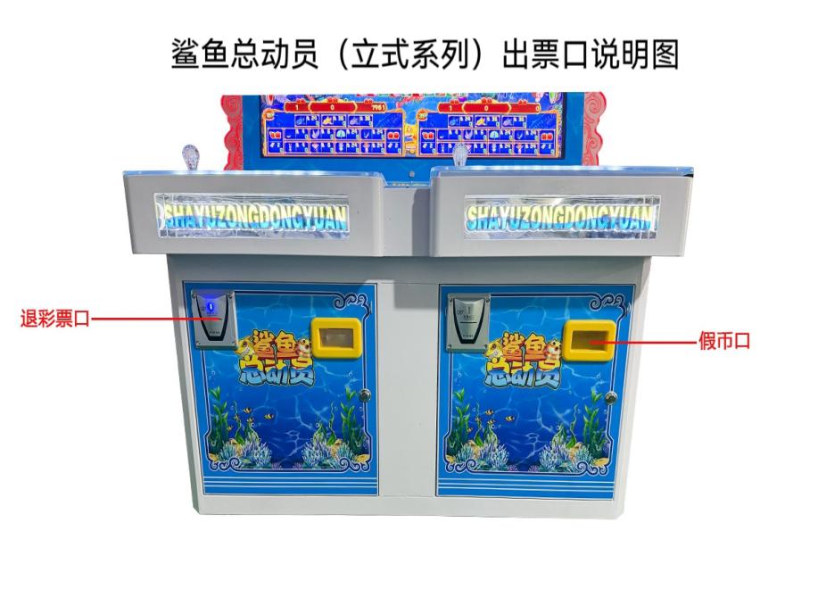 游戏内容简介 | 《鲨鱼总动员(立式)》是为大众娱乐而设计的一款竞猜型游戏游艺彩票机,本机支持合法合规的管理系统,也可通过打开微信或支付宝扫一扫管理系统卡头二维码/屏幕二维码/实体二维码扫码支付投币或投入实体游戏代币获得对应的电子竞猜积分后玩家即可开始游戏。本机适用于网咖、竞技馆、动漫城、商超、台球俱乐部等符合经营许可的使用场所。本游戏以简单的玩法,搭配卡通的角色(有飞禽类的动物、走兽类的动物),游戏中每一个角色都拥有不同的效果技能,给大家体验一个简单的竞猜类游戏。游戏里分别有八只不同种类的小动物(分别是森林之王狮子,国宝熊猫,顽皮猴子,大耳朵小兔子,孔雀皇后,空中霸主老鹰,信使小鸽子,勤劳的小燕子以及三条颜色不同的鲨鱼(蓝鲨、金鲨、银鲨),鲨鱼以及飞禽走兽动物们依次以长方形序列在液晶屏幕内展现出来。游戏开始前,玩家给自己喜欢的飞禽类动物/走兽类动物/鲨鱼/(或单独竞猜飞禽/走兽)进行电子积分竞猜注入,游戏开始后,屏幕内正中央宝石蟾蜍口吐白色指示灯条在动物角色内进行快速旋转转圈然后缓慢停止,当宝石蟾蜍口吐白色指示灯条完全停留在任意一只飞禽类动物/走兽类动物/鲨鱼时,则本局游戏结束。当玩家在游戏开始前竞猜注入的任意一只飞禽类动物/走兽类动物/鲨鱼同时是宝石蟾蜍口吐白色指示灯条转圈最后完全停留下来的动物时,则获得该飞禽类动物/走兽类动物/鲨鱼相对应的电子积分/彩票奖励。玩家注入的电子竞猜积分不同,获得该飞禽类动物/走兽类动物/鲨鱼/(飞禽/走兽)相对应的电子积分/彩票奖励也就不同。本机立式支持联机游玩(2人/4人/6人/8人台)。玩家可用获得的积分奖励手动选择退实物彩票/电子彩票,到店面吧台用实物彩票/电子彩票兑换精美礼品。玩家也可以选择退电子彩票直接返还到玩家手机上,也可以用手机扫卡头/屏幕二维码领取电子彩票,都可以链接到电子商城上选择心仪的礼品使用电子彩票兑换。同时为了“顺应“互联网+”发展趋势,鼓励娱乐场所与互联网结合发展,实现场内场外、线上线下互动,增强娱乐场所体验式服务”的要求,本设备可以通过物联网技术把实体游戏游艺设备的游戏内容推送到移动端供客人游玩,仅限于从实体设备所在的公众号、小程序、APP及网络推广平台入口进入的玩家游玩。 | ||