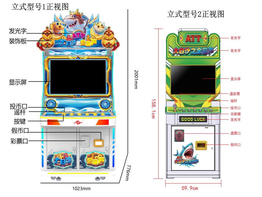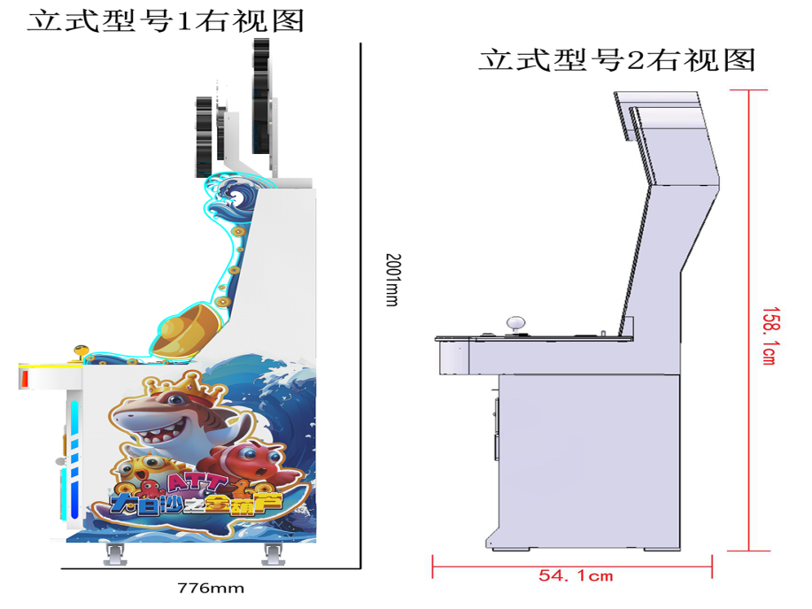 机型机种 | 游艺娱乐设备 | 设备尺寸 | 59.9*54.1*158.1 102.3*77.6*200.1 |