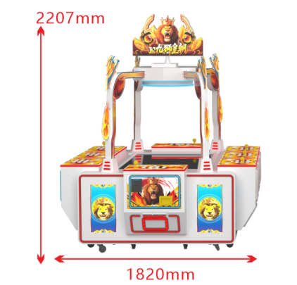 游戏内容简介 | 《九狮皇朝(平板8人)》是为大众娱乐而设计的一款支持多人的竞猜类游戏游艺彩票机,本机支持合法合规的管理系统,也可通过打开微信或支付宝扫一扫管理系统卡头二维码/屏幕二维码/实体二维码扫码支付投币或投入实体游戏代币获得对应的能量积分数后玩家即可手动启动游戏。本机适用于网咖、竞技馆、动漫城、商超、台球俱乐部等符合经营许可的使用场所。 游戏中将国宝熊猫、威武狮子、顽皮猴子、大耳朵兔子和森林狮子王衔接为一个卡通可爱的动物世界,给大家带来一个全新的竞猜类游戏.此游戏玩法简单易上手,玩家通过游戏后,可以获得相对应的积分/彩票。当游戏开始后,会进入倒计时环节,玩家可选择自己喜爱的小动物给予支持注入幸运力量,当屏幕上的指针停留与给予支持的小动物位置相同时,玩家即可获得该动物对应的彩票/能量积分奖励,此外,游戏内容里面还为玩家们准备了各种小游戏不定时大放送(大三元、大四喜、大满贯、幸运翻倍、皇冠金狮等等)。在游戏中,玩家给任何小动物注入力量时,会消耗能量积分数,当玩家能量积分数为零时则游戏结束。 同时玩家可用获得的能量积分手动选择退实物彩票/电子彩票,可到店面吧台用彩票/电子彩票兑换精美礼品,也可以链接到电子商城上选择心仪的礼品使用彩票/电子彩票兑换,填写正确的收货地址,商城将精美礼品通过快递送达。同时为了“顺应“互联网+”发展趋势,鼓励娱乐场所与互联网结合发展,实现场内场外、线上线下互动,增强娱乐场所体验式服务”的要求,本设备可以通过物联网技术把实体游戏游艺设备的游戏内容推送到移动端供客人游玩,仅限于从实体设备所在的公众号、小程序、APP及网络推广平台入口进入的玩家游玩。 | ||