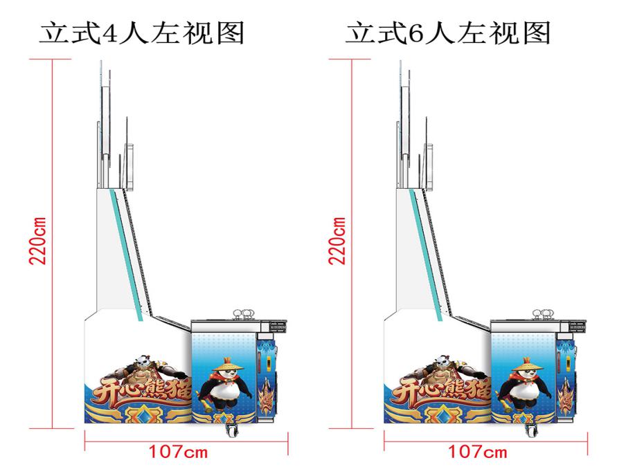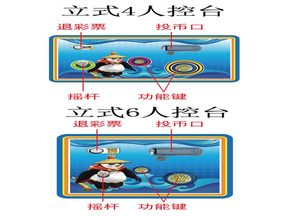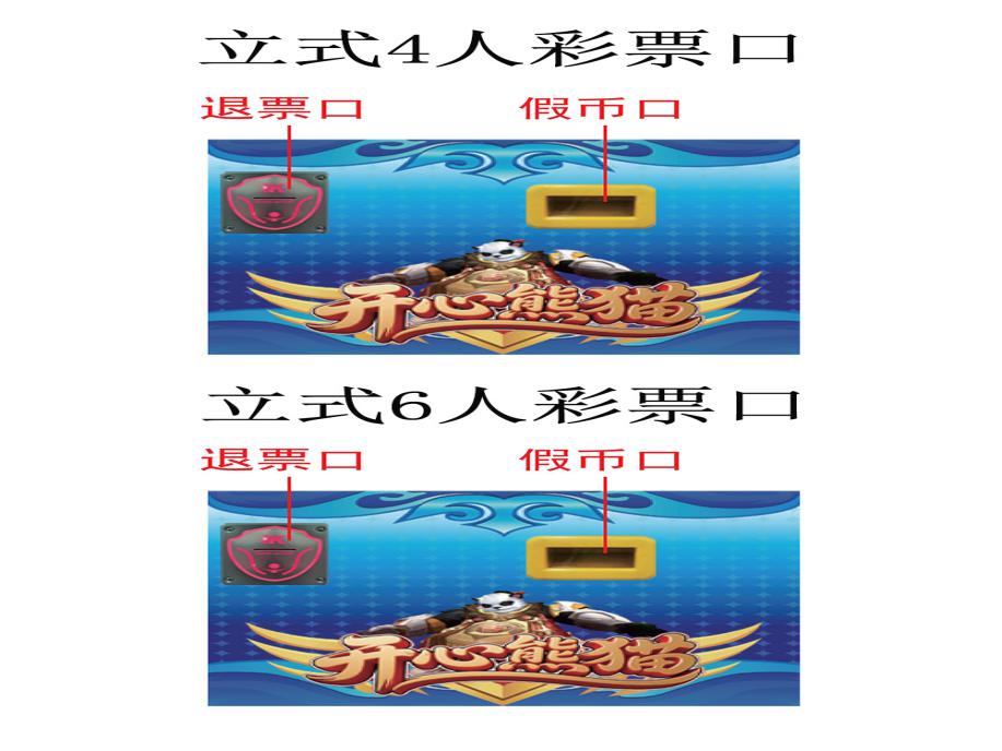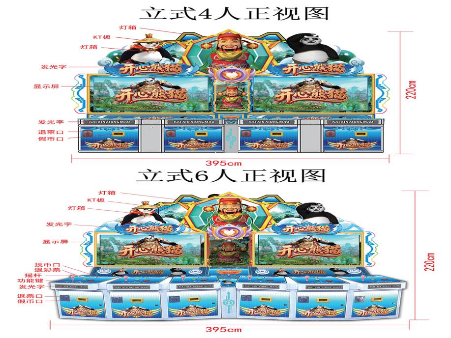 游戏内容简介 | 《开心熊猫(立式4/6人)》是为大众娱乐而设计的一款支持4/6人同时游玩的游戏游艺彩票机,本机支持合法合规的管理系统,也可通过打开微信或支付宝扫一扫管理系统卡头二维码/屏幕二维码/实体二维码扫码支付投币或投入实体游戏代币获得对应的能量积分子弹数后玩家即可手动启动游戏。本机适用于网咖、竞技馆、动漫城、商超、台球俱乐部等符合经营许可的使用场所。本游戏是以多场景+各种奇珍异兽+道具为题材(比如:大眼鱼,蝴蝶鱼,金鲨,白鲨,斑斓鱼,刺猬鱼,乌龟,小鲨鱼,灯笼鱼,魔鬼鱼,金雕鱼,斑斓鲨,组合鱼群,花斑豹,金象,狮王,麒麟,神龙,熊猫)等等,由多种不同风格的场景,众多各具特色的海洋生物+异兽+道具身上蕴藏着无尽的秘密,等待着勇敢的玩家深入探索,体验一场视觉盛宴。在射击过程中击杀金象,神龙等可以获得超级大奖,让玩家获得丰厚的彩票/能量积分奖励。同时在游戏中,玩家在射击任意海洋生物+异兽+道具时,会消耗能量积分子弹数,击杀任何的海洋生物+异兽+道具都会得到该海洋生物+异兽+道具相对应的彩票/能量积分奖励,当玩家能量积分子弹数为零时则游戏结束。同时玩家可用获得的能量积分手动选择退实物彩票/电子彩票/礼品/礼品积分卡,可到店面吧台用彩票/电子彩票/礼品积分卡兑换精美礼品,可以用手机扫卡头/屏幕二维码领取电子彩票,也可以链接到电子商城上选择心仪的礼品使用彩票/电子彩票/礼品积分卡兑换,填写正确的收货地址,商城将精美礼品通过快递送达。同时为了“顺应“互联网+”发展趋势,鼓励娱乐场所与互联网结合发展,实现场内场外、线上线下互动,增强娱乐场所体验式服务”的要求,本设备可以通过物联网技术把实体游戏游艺设备的游戏内容推送到移动端供客人游玩,仅限于从实体设备所在的公众号、小程序、APP及网络推广平台入口进入的玩家游玩。 | ||