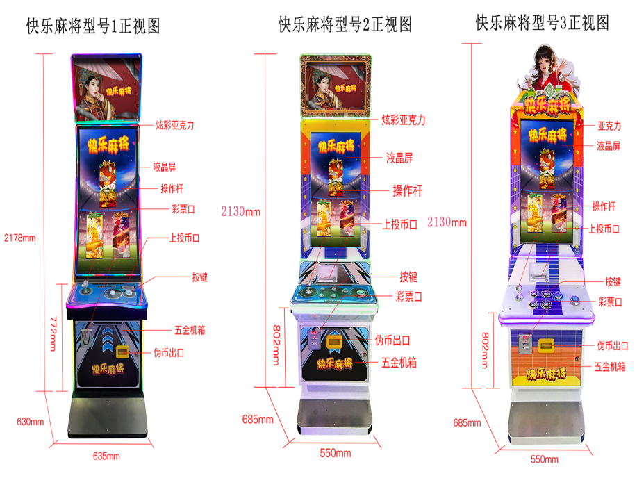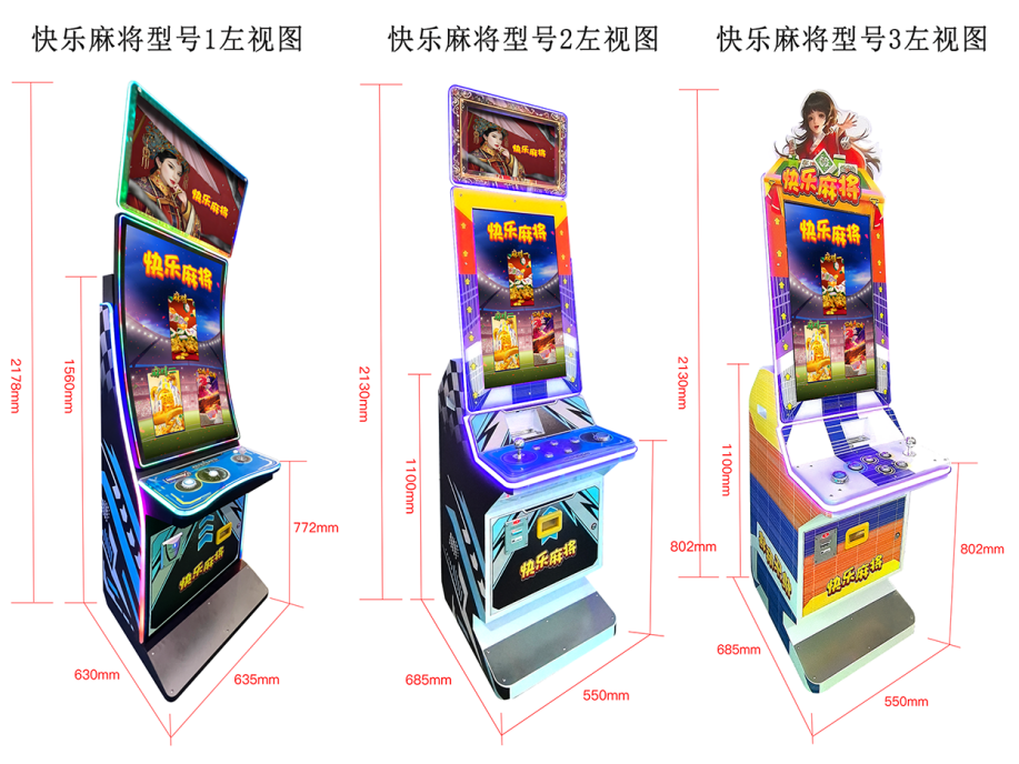 游戏内容简介 | 《快乐麻将三合一(立式1人)》是以消消乐为主题的游戏游艺娱乐设备,本机支持合法合规的管理系统,也可通过打开微信或支付宝扫一扫管理系统卡头二维码/屏幕二维码/实体二维码扫码支付投币或投入实体游戏代币后玩家即可开始游戏。本机可多台连线使用,可多人同时游玩,适用于网咖、竞技馆、动漫城、商超、台球俱乐部等符合经营许可的使用场所。本游戏结合了各种类型的麻将+动物公鸡等素材(比如:白板、八萬、红中、二条、二筒、五条、發、公鸡、鸡爪、数字、字母、百搭)等等,由多种不同卡通风格素材游戏,画面根据动漫国风风格进行设计,非常贴合的表现出当时的年代特色及人物特性,让玩家可以根据自己游戏内的喜好选择自己的游戏风格来娱乐。让玩家体验一场视觉盛宴。让玩家在选择上的体验感更多样化,更能符合种种玩家的需求和娱乐感受,整体画面动感十足,特效表现也多姿多彩,真正实现一机多玩的功能,整合了多个不同类型的游戏。本游戏新颖,有趣, 活泼。可以让玩家在游戏过程中获得很强的互动体验,从而放松身心。得到更满意的游戏乐趣和享受,同时获得相应的奖励。同时玩家可用获得的彩票奖励手动选择退实物彩票/电子彩票,可到店面吧台用彩票/电子彩票兑换精美礼品,也可以链接到电子商城上选择心仪的礼品使用彩票/电子彩票兑换,填写正确的收货地址,商城将精美礼品通过快递送达。同时为了响应文市发【2016]26号文件内容:“顺应“互联网+”发展趋势,鼓励娱乐场所与互联网结合发展,实现场内场外、线上线下互动,增强娱乐场所体验式服务”的要求,本设备可以通过物联网技术把实体游戏游艺设备的游戏内容推送到移动端供客人游玩,仅限于从实体设备所在的公众号、小程序、APP及网络推广平台入口进入的玩家游玩。 | ||