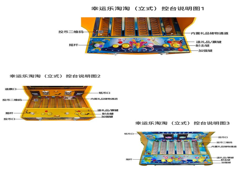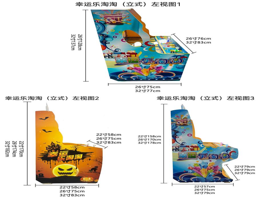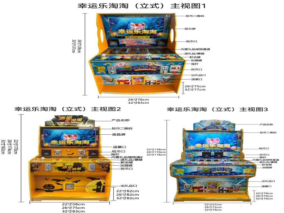 游戏内容简介 | 《幸运乐淘淘(立式)》是为大众娱乐而设计的一款游戏游艺彩票/礼品机,本机支持合法合规的管理系统,也可通过打开微信或支付宝扫一扫管理系统卡头二维码/屏幕二维码/实体二维码扫码支付投币或投入实体游戏代币获得对应的电子积分子弹数后玩家即可手动启动游戏。本机适用于网咖、竞技馆、动漫城、商超、台球俱乐部等符合经营许可的使用场所。本游戏可选以海洋生物+异兽+道具为游戏题材,可选怪物生物+异兽+道具主题为游戏题材,可选鸟类生物+异兽+道具为游戏题材。(比如鱼类题材:虾虎鱼、暹罗斗鱼、鳉鱼、气泡鱼、刺豚鱼、小海马、蝴蝶鱼、蓝魔鱼、小金鱼、镰刀鱼、刺尾鱼、长嘴鸭鱼、海龟、魔鬼鱼、刺猬鱼、凤凰、金凤凰、金海豚累计五个送幸运转盘、冰山定屏炸弹、蓝海豚、仙鹤定屏炸弹、铠甲雄狮送夺宝彩金、一呼百应同类炸弹、金葫芦全屏吸鱼、神龙全屏炸弹、变异麒麟疯狂鱼叉、金色宝鼎开心拍拍乐30秒、变异财神、海龟钻头炮、海龟连环炸弹、海龟电磁炮、绿色全连锁闪电、礼品美人鱼、神龙金球全中礼品鱼、一箭双雕礼品美人鱼、连中三元礼品美人鱼、各类型鱼类组合、黑色巨鳄送喜从天降彩金等等。怪物类题材:虚拟鬼怪、雨伞怪、南瓜怪、木乃伊怪、镰刀怪、丧尸怪、僵尸怪、绿魔怪、吸血鬼怪、雪山僵尸怪、变种狼人怪、飞天人形蝙蝠怪、透明虚拟怪、超级雨伞怪、超级南瓜怪、蘑菇怪电光破、蘑菇怪连环爆破、蘑菇怪魔旋弹、超级金龙、巨型熔岩怪、巨型牛头怪、巨型人形石头怪、暗黑修罗等等。鸟类题材:燕子、蝙蝠、鸽子、黄鹂鸟、猫头鹰、大雁、天鹅、鹦鹉、巨嘴鸟、火烈鸟、鹈鹕、变种孔雀鸡、小凤凰、蓝孔雀、猛禽老鹰、红凤凰、金凤凰、金色金雕、鸵鸟、变异神鹰全屏炸弹、猴子宝宝集满五个送彩金、宝鼎送幸运般子、豹子局部炸弹、蓝色飞鹤定屏炸弹、七彩凤凰随机奖励翻倍、仙鹤、金色大象送财运到彩金、螃蟹电磁炮、螃蟹连环炸弹、螃蟹钻头炮、凤凰礼品、飞天白马全中礼品、凤凰礼品组合、黑龙、凤凰彩金、金圈同类炸弹、随机小草、红鱼组合鸟、各类型组合鸟、金色摇钱树送超级大奖、随机送JP大奖天降财神彩金等等)。由多种不同风格的场景,众多各具特色的海洋生物/怪物生物/鸟类生物/异兽/道具身上蕴藏着无尽的秘密,等待着勇敢的玩家深入探索,体验一场视觉盛宴。在射击过程中击杀金葫芦全屏吸鱼、神龙全屏炸弹可以获得超级大奖,让玩家获得丰厚的电子积分/彩票奖励。本设备同时支持多台联机游玩,设备亚克力头顶可拆卸。同时在游戏中,玩家在射击任意海洋生物/怪物生物/鸟类生物/异兽/道具时,会消耗电子积分子弹数,击杀任何的海洋生物/怪物生物/鸟类生物/异兽/道具都会得到该海洋生物/怪物生物/鸟类生物/异兽/道具相对应的电子积分/彩票奖励,当玩家电子积分子弹数为零时则游戏结束。玩家可用获得的积分奖励手动选择退实物彩票/电子彩票/礼品/礼品卡,到店面吧台用实物彩票/电子彩票/礼品卡兑换精美礼品。玩家也可以选择退电子彩票直接返还到玩家手机上,也可以用手机扫卡头/屏幕二维码领取电子彩票,都可以链接到电子商城上选择心仪的礼品使用电子彩票/礼品卡兑换。同时为了“顺应“互联网+”发展趋势,鼓励娱乐场所与互联网结合发展,实现场内场外、线上线下互动,增强娱乐场所体验式服务”的要求,本设备可以通过物联网技术把实体游戏游艺设备的游戏内容推送到移动端供客人游玩,仅限于从实体设备所在的公众号、小程序、APP及网络推广平台入口进入的玩家游玩。 | ||