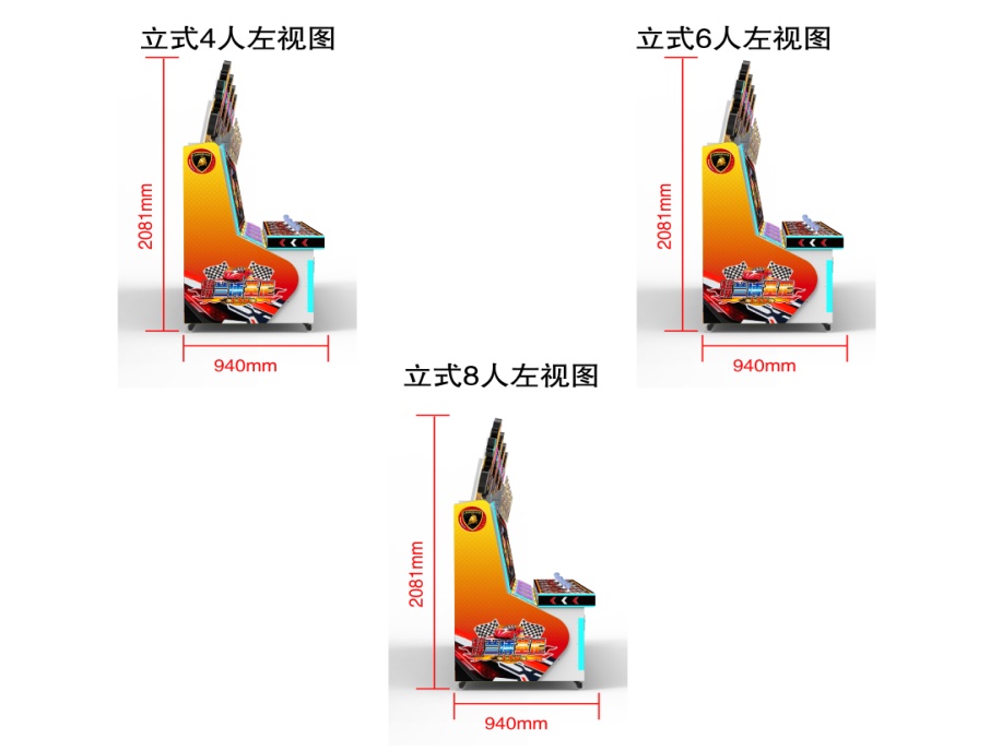 机型机种 | 游艺娱乐设备 | 设备尺寸 | 2196*940*2081MM 3294*940*2081MM 4392*940*2081MM |