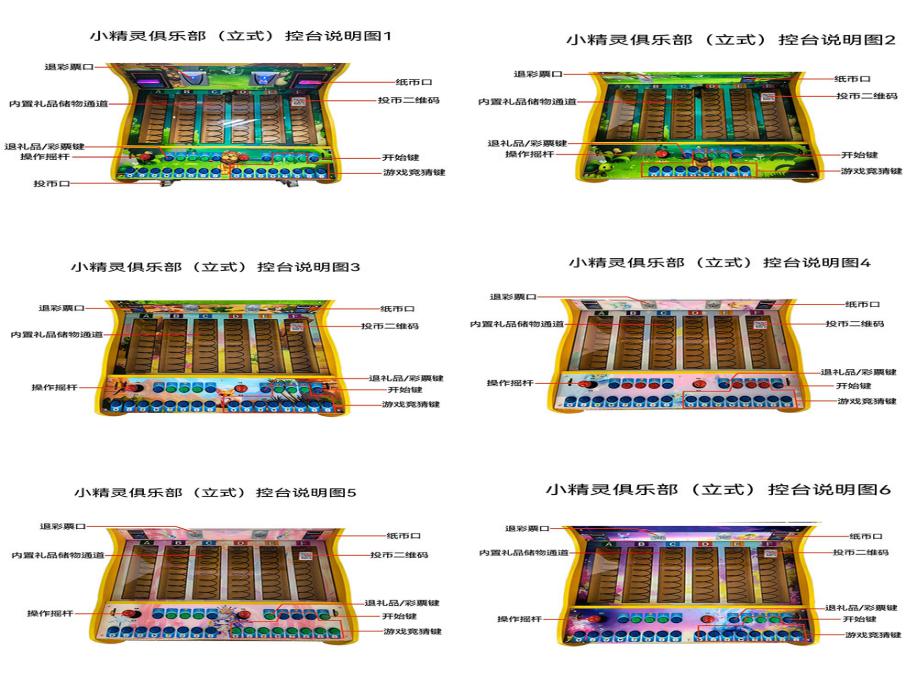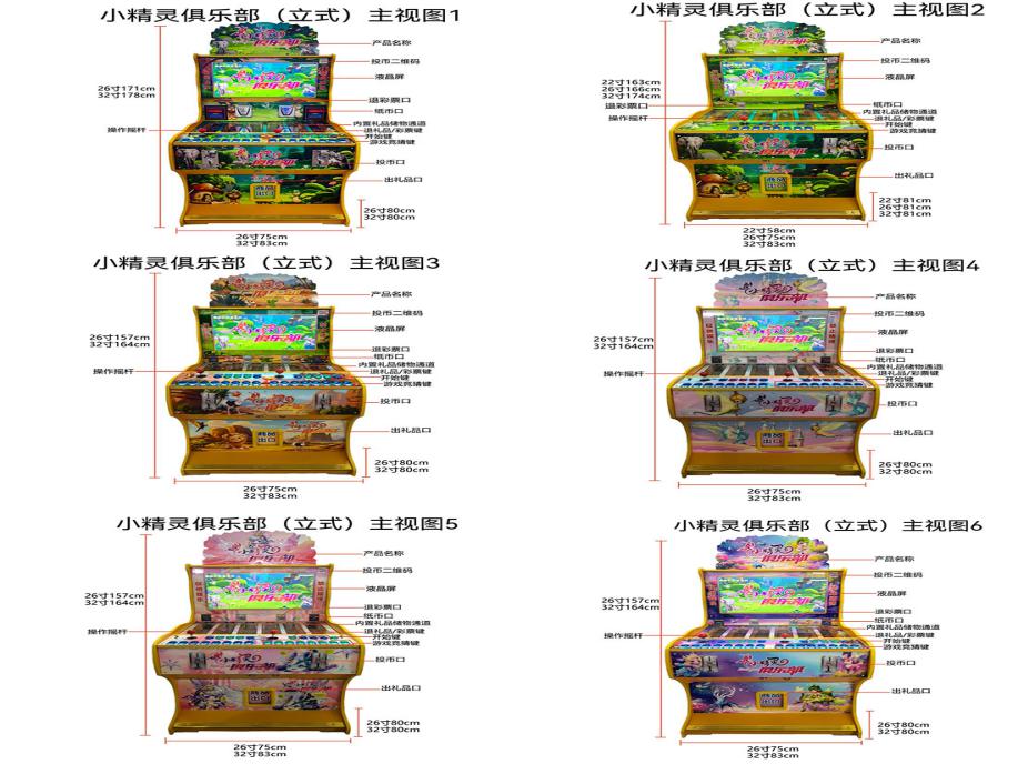游戏内容简介 | 《小精灵俱乐部(立式)》是为大众娱乐而设计的一款娱乐游戏游艺彩票/礼品机。本机支持合法合规的管理系统,也可通过打开微信或支付宝扫一扫管理系统卡头二维码/屏幕二维码/实体二维码扫码支付投币或投入实体游戏代币等方式获得对应的竞猜积分后玩家即可开始游戏/或等待机器自动倒计时。本机适用于网咖、竞技馆、动漫城、商超、台球俱乐部等符合经营许可的使用场所。本游戏提供五种题材供玩家选择(水果题材、车标题材、神话人物题材、动物+海洋题材、动物+足球题材)以全新的玩法,丰富的卡通角色,游戏中每一个角色都拥有不同的效果技能,给大家体验一个全新的竞猜类游戏。(游戏里:水果题材为:苹果、西瓜、芒果、桔子、钻石、双77、双星、铃铛、骰子、宝箱。车标题材为:卡通奔驰、卡通大众、卡通奥迪、卡通宝马。金色龙头。动物+海洋题材为:森林之王老虎、国宝熊猫、顽皮猴子、大耳朵兔子、鸽子、燕子、孔雀、老鹰、太极图、金鲨/银鲨。动物+足球题材为:狮子、熊猫、猴子、兔子、鸽子、燕子、孔雀、老鹰、足球金杯。神话人物题材为:张果老、铁拐李、汉钟离、韩湘子、吕洞宾、何仙姑、蓝采和、曹国舅、财神)。水果/动物/车标/人物/道具依次以长方形序列在屏幕内展现出来。游戏开始前,玩家自行选择给自己喜欢的水果/动物/车标/人物/道具进行积分竞猜注入,游戏开始后,液晶屏幕内转灯条在画面内进行快速旋转转圈然后缓慢停止,当指示转灯条随机完全停止在某一个水果/动物/车标/人物/道具时,则本局游戏结束。当玩家竞猜到指示转灯条完全停留在任意的某一个水果/动物/车标/人物/道具时,则获得该水果/动物/车标/人物/道具相对应的竞猜积分/彩票奖励。玩家注入的竞猜积分不同,获得该水果/动物/车标/人物/道具相对应的竞猜积分/彩票奖励也就不同。机器游戏内容里面还为玩家们准备了各种小游戏不定时大放送(比如三元:获得中三个任意水果/动物/车标/人物/道具。开火车:获得中三到八个任意水果/动物/车标/人物/道具。幸运灯:随机赠送单个任意水果/动物/车标/人物/道具。仙女散花:随机送一到九个任意水果/动物/车标/人物/道具。钻石:随机送一到九个任意水果/动物/车标/人物/道具。小猫变身:随机变身一到十次,每次变身获得自身两倍的彩票/积分。随机灯:不定时送一到二个任意水果/动物/车标/人物/道具。开心时刻:获得投币的积分/彩票奖励翻倍。比大小:左移动总票,进行大小竞猜,猜对得到两倍积分/彩票奖励。通通有奖:获得所有竞猜奖励,随机送二到九倍彩票/积分)等可以让玩家可以获得海量积分/彩票。游戏结束后,玩家可用获得的积分手动选择退实物彩票/电子彩票/礼品/礼品卡,可到店面吧台用彩票/电子彩票/礼品卡兑换精美礼品,玩家也可以选择退电子彩票直接返还到玩家手机上,也可以用手机扫卡头/屏幕二维码领取电子彩票,都可以链接到电子商城上选择心仪的礼品使用彩票/电子彩票/礼品卡兑换,填写正确的收货地址,商城将精美礼品通过快递送达。同时为了“顺应“互联网+”发展趋势,鼓励娱乐场所与互联网结合发展,实现场内场外、线上线下互动,增强娱乐场所体验式服务”的要求,本设备可以通过物联网技术把实体游戏游艺设备的游戏内容推送到移动端供客人游玩,仅限于从实体设备所在的公众号、小程序、APP及网络推广平台入口进入的玩家游玩。 | ||