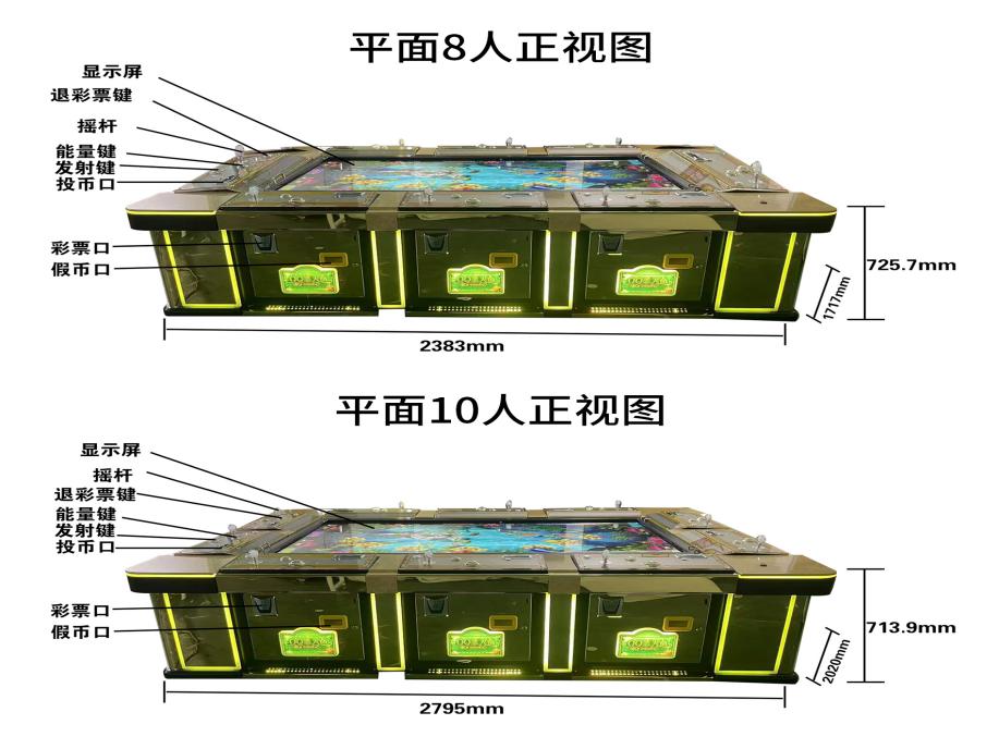 游戏内容简介 | 《QQ美人鱼摇钱树版(平面8/10人)》是为大众娱乐而设计的一款射击类游戏游艺彩票机,本机支持合法合规的管理系统。也可通过打开微信或支付宝扫一扫管理系统卡头二维码/屏幕二维码/实体二维码扫码支付投币或投入实体游戏代币获得对应的游戏分数和子弹数后玩家即可手动启动游戏。本机适用于网咖、竞技馆、动漫城、商超、台球俱乐部等符合经营许可的使用场所。本游戏是以多场景+海洋生物+异兽+道具为题材(比如:小眼鱼、大眼鱼、蝴蝶鱼、金鲨、白鲨、斑斓鱼、刺猬鱼、乌龟、小鲨鱼、灯笼鱼、金雕鱼、斑斓鲨、魔鬼鱼、小鱼群、深水鳄鱼、火焰龟、同类炸弹、全屏炸弹、局部炸弹、随机鱼、闪电连锁、美人鱼)等等,由多种不同风格的场景,众多各具特色的海洋生物+异兽+道具身上蕴藏着无尽的秘密,等待着勇敢的玩家深入探索,体验一场视觉盛宴。同时在游戏中,玩家在射击任意海洋生物+异兽+道具时,会消耗游戏分数和子弹数,击杀任何的海洋生物+异兽+道具都会得到该海洋生物+异兽+道具相对应的彩票/电子彩票奖励,当玩家游戏分数和子弹数为零时则游戏结束。玩家可用获得的游戏分数手动选择退实物彩票/电子彩票/礼品积分卡,到店面吧台用实物彩票/电子彩票/礼品积分卡兑换精美礼品。玩家也可以选择退电子彩票/彩票直接返还到玩家手机上,也可以用手机扫卡头/屏幕二维码领取电子彩票/彩票,都可以链接到电子商城上选择心仪的礼品使用电子彩票/彩票/礼品积分卡兑换。同时为了“顺应“互联网+”发展趋势,鼓励娱乐场所与互联网结合发展,实现场内场外、线上线下互动,增强娱乐场所体验式服务”的要求,本设备可以通过物联网技术把实体游戏游艺设备的游戏内容推送到移动端供客人游玩,仅限于从实体设备所在的公众号、小程序、APP 及网络推广平台入口进入的玩家游玩。 | ||