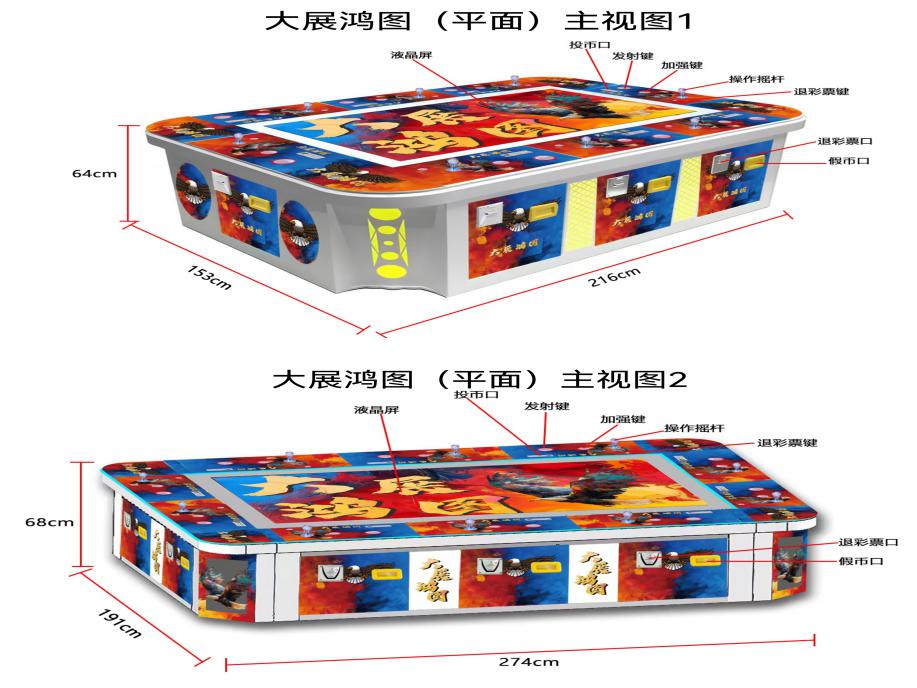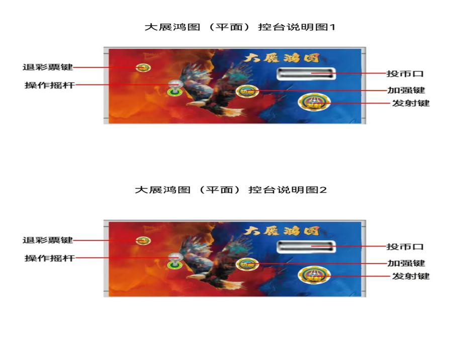 游戏内容简介 | 大展鸿图(平面)》是为大众娱乐而设计的一款游戏游艺彩票机,本机支持合法合规的管理系统,也可通过打开微信或支付宝扫一扫管理系统卡头二维码/屏幕二维码/实体二维码扫码支付投币或投入实体游戏代币获得对应的电子积分子弹数后玩家即可手动启动游戏。本机适用于网咖、竞技馆、动漫城、商超、台球俱乐部等符合经营许可的使用场所。本游戏可选以海洋生物+异兽+道具为游戏题材,可选虫类生物+异兽+道具为游戏题材,可选鸟类生物+异兽+道具为游戏题材。(比如鱼类题材一:虾虎鱼、暹罗斗鱼、气泡鱼、狮子鱼、斑斓鱼、刺豚鱼、蓝吊鱼、乌龟、吊尾鱼、蝴蝶鱼、马尾鱼、海藻、魔鬼鱼、金鲨、银鲨、蝙蝠、招财猫开心拍拍乐30秒、关羽全屏炸弹、吕布全屏炸弹、张飞全屏炸弹、剑仙、老虎、凤凰、狮子、神龙、大象、麒麟、礼品美人鱼、一箭双雕礼品美人鱼、连中三元礼品美人鱼、各类型鱼类组合等等。鱼类题材二:黄鱼、绿鱼、紫鱼、红鱼、灯笼鱼、大头鱼、电鳗、海龟、蓝鲨、先锋鱼、魔鬼鱼、金鲨、老鹰集满五个送彩金、红色神牛、美人鱼、仙鹤送彩金、黑色神牛、神龙、豹子、麒麟、凤凰、狮子、大象、老鹰全屏炸弹、老虎全屏炸弹、随机送JP大奖天降财神彩金、金色神牛送福彩金、分天火箭一击必杀、莲花台送无敌炸弹、莲花台送幸运宝箱、莲花台送幸运转盘、莲花台送开心30秒、莲花台送幸运色盅、红色组合鱼、各类型鱼类组合鱼等等。虫类题材:蝴蝶、独角仙、飞蛾、棕蝴蝶、红蝴蝶、七星瓢虫、锹甲、蜜蜂、红蝽、大黄蜂、大型甲虫、胡蜂、蓝蝇、犀金龟、金钳甲虫、绿蝇、白蝇、青蝇、各类型昆虫、礼品美人鱼、异兽、道具等等。鸟类题材:燕子、蝙蝠、鸽子、黄鹂鸟、猫头鹰、大雁、天鹅、鹦鹉、巨嘴鸟、火烈鸟、鹈鹕、变种孔雀鸡、蓝孔雀、猛禽老鹰、红凤凰、金凤凰、金色金雕、鸵鸟、变异神鹰全屏炸弹、猴子宝宝集满五个送彩金、宝鼎送幸运般子、豹子局部炸弹、蓝色飞鹤定屏炸弹、七彩凤凰随机奖励翻倍、仙鹤、金色大象送财运到彩金、螃蟹电磁炮、螃蟹连环炸弹、螃蟹钻头炮、凤凰礼品、飞天白马全中礼品、凤凰礼品组合、黑龙、凤凰彩金、金圈同类炸弹、随机小草、红鱼组合鸟、各类型组合鸟、金色摇钱树送超级大奖、随机送JP大奖天降财神彩金等等)。由多种不同风格的场景,众多各具特色的海洋生物/虫类生物/鸟类生物/异兽/道具身上蕴藏着无尽的秘密,等待着勇敢的玩家深入探索,体验一场视觉盛宴。在射击过程中击杀老鹰全屏炸弹、老虎全屏炸弹可以获得超级大奖,让玩家获得丰厚的电子积分/彩票奖励。同时在游戏中,玩家在射击任意海洋生物/怪物生物/鸟类生物/异兽/道具时,会消耗电子积分子弹数,击杀任何的海洋生物/虫类生物/鸟类生物/异兽/道具都会得到该海洋生物/虫类生物/鸟类生物/异兽/道具相对应的电子积分/彩票奖励,当玩家电子积分子弹数为零时则游戏结束。玩家可用获得的积分奖励手动选择退实物彩票/电子彩票,到店面吧台用实物彩票/电子彩票兑换精美礼品。玩家也可以选择退电子彩票直接返还到玩家手机上,也可以用手机扫卡头/屏幕二维码领取电子彩票,都可以链接到电子商城上选择心仪的礼品使用电子彩票兑换。同时为了“顺应“互联网+”发展趋势,鼓励娱乐场所与互联网结合发展,实现场内场外、线上线下互动,增强娱乐场所体验式服务”的要求,本设备可以通过物联网技术把实体游戏游艺设备的游戏内容推送到移动端供客人游玩,仅限于从实体设备所在的公众号、小程序、APP及网络推广平台入口进入的玩家游玩。 | ||