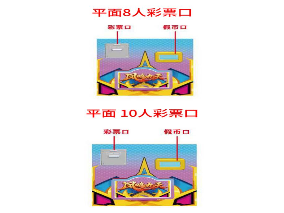 游戏内容简介 | 《凤鸣九天(平面8/10人)》是为大众娱乐而设计的一款射击类游戏游艺彩票机,本机支持合法合规的管理系统,也可通过打开微信或支付宝扫一扫管理系统卡头二维码/屏幕二维码/实体二维码扫码支付投币或投入实体游戏代币获得对应的电子积分子弹数后玩家即可手动启动游戏。本机适用于网咖、竞技馆、动漫城、商超、台球俱乐部等符合经营许可的使用场所。本游戏以天空生物+异兽+道具为游戏题材。(比如:小黄鸟、棕色小鸟、蓝鸟、彩羽小鸟、绿色蜂鸟、蓝燕、五彩金刚鹦鹉、绿头鸭、五彩鹦鹉、蓝紫色鸽子、灰色海鸥、红黑相间的鸟、白天鹅、紫色飞鸟、粉色火烈鸟、红羽火烈鸟、蓝孔雀、金色凤凰、金色凤凰、棕色老鹰、金色猛禽、蓝色凤凰(局部炸弹)、金色公鸡(全屏炸弹) 金色巨龙、粉色小鸟(一擊必中)、一箭双雕、大三元、千军万马、钻头炮、激光炮、连环炸弹、拍拍乐)等等。由多种不同风格的场景,众多各具特色的天空生物/异兽/道具身上蕴藏着无尽的秘密,等待着勇敢的玩家深入探索,体验一场视觉盛宴。同时在游戏中,玩家在射击任意天空生物/异兽/道具时,会消耗子弹数,击杀任何的天空生物/异兽/道具都会得到该天空生物/异兽/道具相对应的电子彩票/彩票奖励,当玩家电子彩票子弹数为零时则游戏结束。玩家可用获得的分数奖励手动选择退实物彩票/电子彩票,到店面吧台用实物彩票/电子彩票兑换精美礼品。玩家也可以选择退电子彩票直接返还到玩家手机上,也可以用手机扫卡头/屏幕二维码领取电子彩票,都可以链接到电子商城上选择心仪的礼品使用电子彩票兑换。同时为了“顺应“互联网+”发展趋势,鼓励娱乐场所与互联网结合发展,实现场内场外、线上线下互动,增强娱乐场所体验式服务”的要求,本设备可以通过物联网技术把实体游戏游艺设备的游戏内容推送到移动端供客人游玩,仅限于从实体设备所在的公众号、小程序、APP及网络推广平台入口进入的玩家游玩。 | ||