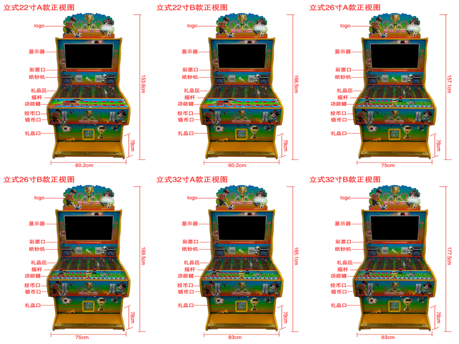 游戏内容简介 | 【皇冠三国(竞猜绿色立式)】是为大众娱乐而设计的一款支持单人/多人联机玩的竞猜类娱乐游戏游艺彩票/礼品机。本机支持合法合规的管理系统,也可通过打开微信或支付宝扫一扫管理系统卡头二维码/屏幕二维码/实体二维码扫码支付投币或投入实体游戏代币等方式获得对应的游戏内游戏分数后玩家即可开始游戏/或等待机器自动倒计时。本机适用于网咖、竞技馆、动漫城、商超、台球俱乐部等符合经营许可的使用场所。本游戏以全新的玩法,丰富的卡通角色,游戏中每一个角色都拥有不同的效果技能,给大家体验一个全新的竞猜类游戏。本游戏是以足球场景+深海场景+天空场景+海洋生物+鸟类生物+异兽+远古生物+飞机机械+神话人物+古代人物+异怪+道具为题材由多 种不同风格的场景,众多各具特色的海洋生物/天空生物/鸟类生物/异兽 /灵怪/道具身上蕴藏着无尽的秘密,多个小游戏等待着勇敢的玩家深入 探索,多场景多种游戏题材与技能道具助力玩家,例如(BAR、七七、 星星、西瓜、铃铛、芒果、橘子、苹果、钻石、红宝石、绿宝石、黄宝 石、紫宝石、蓝宝石)以及多种游戏座驾助力,例如(卡通法拉利、卡通兰博基尼、卡通奔驰、卡通宝马、卡通奥迪、卡通捷达、卡通大众、 卡通日产等等)以及萌宠系统陪伴玩家冒险,例如(神话人物、古代人物、道具、卡通鲨鱼、卡通神龙、百兽之王狮子、卡通猴子、森林之王老虎、陆地之王大象、小白兔、 国宝熊猫、天空之王老鹰、喜鹊、鸽子、孔雀、燕子等等)玩家可自行 选择喜欢的道具/座驾/宠物游戏陪伴,体验一场视觉盛宴。动物们依次以长方形序列在屏幕内展现出来。本游戏角色炫丽,造型独特,玩法简单易上手,玩家通过游戏后,可以获得相对应的动物电子彩票/彩票。当游戏开始后,会进入倒计时环节,玩家给自己喜欢的动物以及动物的颜色进行竞猜,游戏中每一只不同的动物拥有不同的效果技能,给动物加油,选择恰当时机释放技能,和玩家默契配合,玩家的游戏分数不同,获得该动物、人物、道具、水果、以及不同的颜色相对应的电子彩票/彩票也就不同。机器游戏内容里面还为玩家们准备了各种小游戏不定时大放送(如:彩金、幸运奖、幸运翻倍、走兽全中、飞禽全中、大四喜、开火车、暴跳如雷、大三元、小三元、清一色、通通有奖、纵横四海、明牌、大满贯、九莲宝灯等等。玩家可用获得的游戏分数手动选择退实物彩票/电子彩票/礼品积分卡,到店面吧台用实物彩票/电子彩票/礼品积分卡兑换精美礼品。需注意,设备礼品不得销售香烟,并在在设备显著位置张贴不得销售香烟的提示。玩家也可以选择退礼品/电子彩票/彩票直接返还到玩家手机上,也可以用手机扫卡头/屏幕二维码领取电子彩票/彩票,都可以链接到电子商城上选择心仪的礼品使用电子彩票/彩票/礼品积分卡兑换。同时为了“顺应“互联网+”发展趋势,鼓励娱乐场所与互联网结合发展,实现场内场外、线上线下互动,增强娱乐场所体验式服务”的要求,本设备可以通过物联网技术把实体游戏游艺设备的游戏内容推送到移动端供客人游玩,仅限于从实体设备所在的公众号、小程序、APP 及网络推广平台入口进入的玩家游玩,不向全网开放(经营方须具备相关部门批准的经营手续)。 | ||