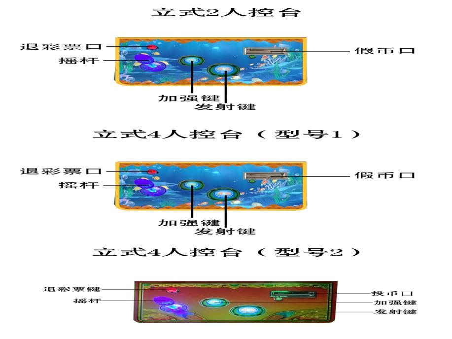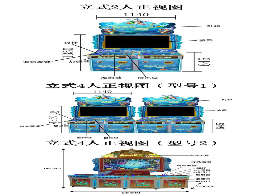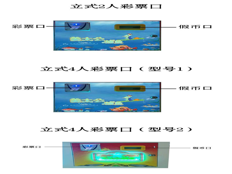 游戏内容简介 | 《姜太公捕鱼(立式2/4/4人)》是为大众娱乐而设计的一款射击类游戏游艺彩票机,本机支持合法合规的管理系统。也可通过打开微信或支付宝扫一扫管理系统卡头二维码/屏幕二维码/实体二维码扫码支付投币或投入实体游戏代币获得对应的游戏分数和子弹数后玩家即可手动启动游戏。本机适用于网咖、竞技馆、动漫城、商超、台球俱乐部等符合经营许可的使用场所。该设备是一款集海洋鱼类模拟射击类游戏。玩家在游戏中作为猎人的角色,可射击到多种海洋鱼类,(比如:斑纹太阳鱼、条纹橙鱼、紫色斑点鳐鱼 金鲨、银鲨、条纹太阳鱼、痞子斑马鱼、紫月鱼、红色海胆怪、蓝紫条纹鱼、贝壳鱼、乌龟、碧玉青龙、赤焰火龙、玄冰银龙、鎏金应龙、棕斑白鱼、小黄鱼、火焰鱼、大三元、大四喜、六六大顺、同类炸弹、一箭双雕、定屏炸弹、局部炸弹、珊瑚礁、能量炮、全屏炸弹、姜太公)等等,海底的各种奇幻世界。除了让你感受绚丽多彩,缤纷有趣的海底世界外,还能享受到捕获鱼儿的惊喜。本游戏画面逼真、新奇,游戏操作简单、直观。玩家通过遥杆及按键操控发射炮弹,收获射击鱼儿的趣味,打中目标获得相应的奖励,最终按照玩家捕获数量获得彩票。。游戏结束后,玩家可用获得的实物彩票/电子彩票,可到店面吧台用彩票/电子彩票兑换精美礼品。玩家也可以选择退电子彩票直接返还到玩家手机上,也可以用手机扫卡头/屏幕二维码领取电子彩票,都可以链接到电子商城上选择心仪的礼品使用电子彩票/礼品卡兑换,填写正确的收货地址,商城将礼品通过快递送达。同时为了“顺应“互联网+”发展趋势,鼓励娱乐场所与互联网结合发展,实现场内场外、线上线下互动,增强娱乐场所体验式服务”的要求,本设备可以通过物联网技术把实体游戏游艺设备的游戏内容推送到移动端供客人游玩,仅限于从实体设备所在的公众号、小程序、APP 及网络推广平台入口进入的玩家游玩。 | ||