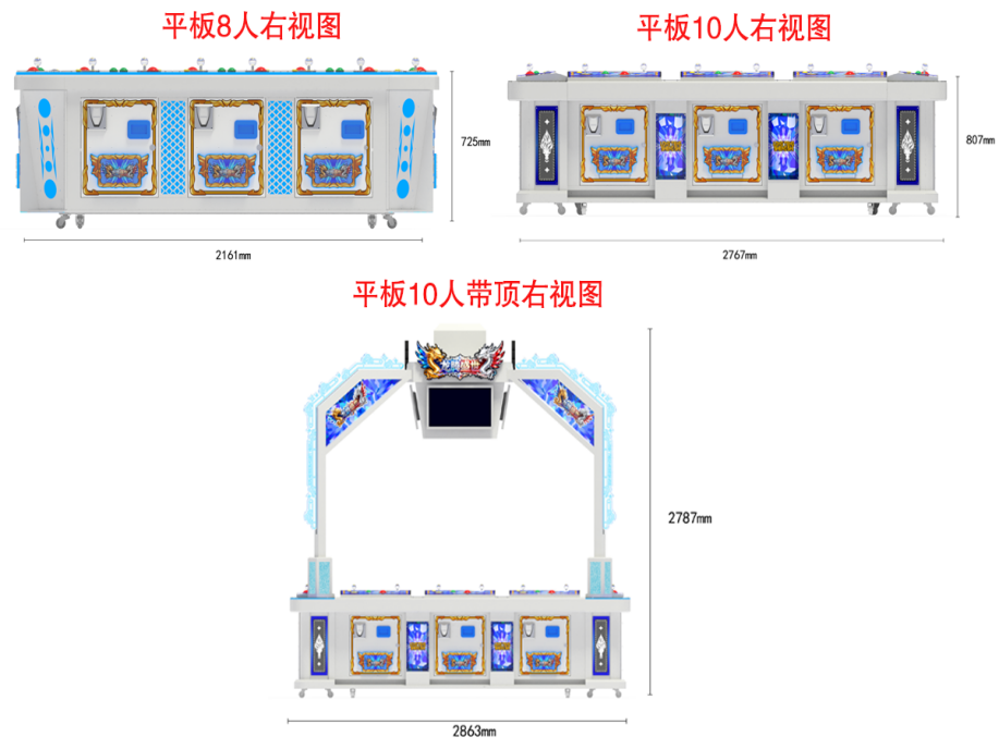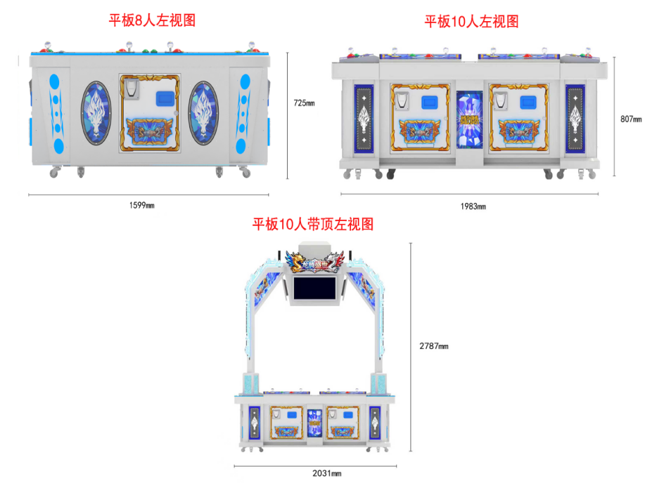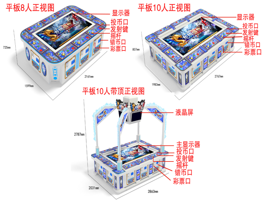 游戏内容简介 | 【龙腾盛世(平板)】是为大众娱乐而设计的娱乐游戏游艺设备,本机支持合法合规的管理系统,也可通过打开扫一扫管理系统二维码/屏幕二维码/实体二维码扫码支付投币或投入实体游戏代币获得对应的子弹数后玩家即可手动启动游戏。本机适用于网咖、竞技馆、动漫城、商超、台球俱乐部等符合经营许可的使用场所。该设备是一款集海洋鱼类,天空飞鸟,卡通昆虫,卡通怪兽,游戏人物五大主题的模拟射击类游戏。玩家在游戏中作为猎人的角色,可射击到多种海洋鱼类,包括大迦鳅鱼、小丑鱼、河豚、狮子鱼、乌龟、旗鱼、灯笼鱼、锯齿鲨、组队鱼群,霸王龟,金色龙龟,深海鳄鱼等,鱼儿游过深海、圳瑚、海底的各种奇幻世界。除了让你感受绚丽多彩,缤纷有趣的海底世界外,还能享受到捕获鱼儿的惊喜。本游戏画面逼真、新奇,游戏操作简单、直观。玩家通过遥杆及按键操控发射炮弹,收获射击鱼儿的趣味,打中目标获得相应的奖励,最终按照玩家捕获数量获得彩票。游戏设备超高清晰液晶显示屏,无论是画面精致细腻程度,或者是颜色的协调,还是光影投射的效果,都逼真的近乎完美,加上美妙的音乐,令玩家爱不释手,欢乐无穷。在游戏的过程中,效果绚丽震撼,提供给玩家一个趣味十足的游乐世界,适合成人及亲子娱乐。当以森林天空猎鸟为主题时,玩家犹如进入了鸟的天堂,沉浸在鸟语花香,与五彩缤纷的世界相融,同类鸟,闪电鸟,充满趣味和益智性适合各个年龄段的玩家,在整个冲关过程中锻炼了玩家的手眼协调性和提高玩家注意力。当以卡通昆虫类爬行为主题时,里面包含了三幅场景,分别以枝繁叶茂的夏天,果实累累的秋天以及大雪纷飞的冬天三个场景,并以与三个季节相契合的绿色、黄色、蓝色为主色调的场景打造构成。同时每个场景里面以“可爱卡通”的风格体现了每个季节的虫类动物,以毛毛虫,蜘蛛,螳螂,蝎子,蜜蜂,蚂蚁,蜻蜓等小动物的游玩,突显动态有趣的效果。可通过拍打按键以及配合晃动摇杆的方式进行捕捉,以此来获取对应的彩票数量。游戏里面还有核心boss:蜈蚣 、蜘蛛、蝎子等拥有神奇的能力,击中后将会出现奖励翻倍的效果。游戏不仅充满了趣味性,而且可以锻炼玩家的反应能力和操作能力,每一关卡都会给玩家带来了不一样的体验。当以怪兽为主题时,游戏的地图丰富,游戏开始后多种兽王随机出现,游戏玩家火力集中击杀各种兽王以及boss后可获得相应的能量值,获得的能量可以继续攻击更多魔怪以及boss,游戏玩法生动有趣,在游戏中让玩家挑战自我极限,游戏中出现的妖怪以及boss.万倍轮盘,雷凤凰,火凤凰,雷神,巨型蛛,铁甲战士,天使蛋,地狱三头犬钻头磨,炸弹,闪电虎,狼骑斗士,冰原狼人,旋风怪,巨石人,连环炸弹,魔王随从等。玩家使用子弹,自由选择攻击当前屏幕上出现的妖怪以及boss,游戏过程中不定期的出现妖风清扫,来助力玩家消灭妖怪,击倒兽王,赠送威力强大的神奇武器,玩家既获得体验感,又能提高免疫力,又能获得通关的乐趣,玩家可以使用多种不同的子弹体验多种不同的设计效果。当以游戏人物为主题时,行云流水的战斗系统: 融合了兵器切换、武技连招与元素附魔,每一场战斗都如舞蹈般华丽且充满策略。精准闪避触发“时缓”,完美格挡震碎敌人架势,给予致命一击! 自由搭配上百种技能符文,锻造和强化传奇武器装备,应对各种强大的敌人。令人震撼的Boss挑战高达数十米的深渊巨兽和诡计多端的堕落神明。每个Boss都有独特的机制和多阶段形态,胜利带来的成就感无与伦比。游戏结束后,玩家可用获得的实物彩票/电子彩票,可到店面吧台用彩票/电子彩票兑换精美礼品,电子彩票直接返还到玩家手机上或玩家用手机扫系统二维码/屏幕二维码领取相应奖励,获得实物彩票按经营方合规方式选择心仪的礼品使用(礼品需符合国家法律及当地政策的规定)。同时为了“顺应“互联网+”发展趋势,鼓励娱乐场所与互联网结合发展,实现场内场外、线上线下互动,增强娱乐场所体验式服务”的要求,本设备可以通过物联网技术把实体游戏游艺设备的游戏内容推送到移动端供客人游玩,仅限于从实体设备所在的公众号、小程序、APP及网络推广平台入口进入的玩家游玩。 | ||