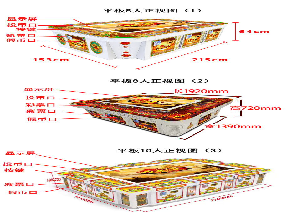 机型机种 | 游艺娱乐设备 | 设备尺寸 | 215*153*64 192*139*72 274*191.3*75 |