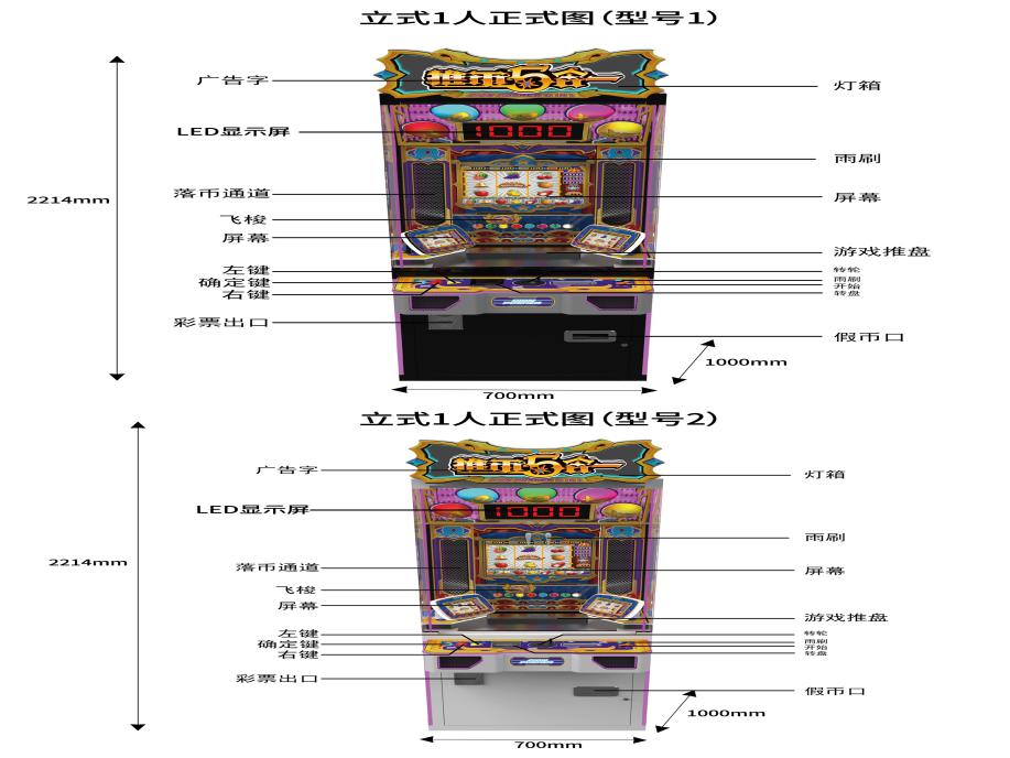 游戏内容简介 | 《推币五合一(立式 支持多台连线)》是为大众娱乐而设计的一款以推推乐为主题的推币类游戏游艺彩票机,只退彩票不退币,掉落的游戏代币只在机器内部循环不会掉落在机器外部。本机支持合法合规的管理系统,也可通过打开微信或支付宝扫一扫管理系统卡头二维码/屏幕二维码/实体二维码扫码支付投币或投入实体游戏代币获得对应的游戏游玩电子分数后玩家即可手动启动游戏。本机适用于网咖、竞技馆、动漫城、商超、台球俱乐部等符合经营许可的使用场所。设备以其独特的玩法和丰富的彩票奖励机制,吸引了无数玩家的关注与参与。此游戏主要通过玩家投入代币,并操作飞碟摇摆将游戏币推向游戏机内的堆叠区域,旨在使尽可能多的硬币落入下方的收集口或触发特定的彩票奖励机制。推币的设计精巧,既有充满复古风情的经典外观,也有融合现代小游戏元素的创新之作。游戏过程中,玩家不仅需要掌握推杆的力度与角度,还需观察堆叠区域内硬币的分布情况,以及利用游戏提供的各种道具和特殊效果,如推盘、以增加硬币掉落的乐趣。此外,推币还设置了丰富的奖励系统,触发特殊道具,如1.大魔术师:礼炮、宝石、魔术帽、火箭、号角、礼物、王冠、锤子。2.招财进宝:红包、宝玉、铜钱、灯笼、金元宝、聚宝盆、金童玉女、蟾蜍。3.冰淇淋拼盘、起司块、 姜饼小屋、爱心华夫饼、彩虹杯子蛋糕、蜂蜜罐、棒棒糖、橙子切片。4.超级水果:西瓜、铃铛、苹果、柠檬、荔枝、橘子、樱桃、葡萄。5.海盗宝藏:酒桶、双枪、船锚、宝藏图、望远镜、大炮、双刀、宝藏以及收集特定图案以兑换彩票奖品等。这些奖励不仅为玩家带来了彩票上的收获,更增添了游戏的趣味性和挑战性。综上所述,推币游戏不仅考验着玩家的操作技巧与策略思维,更是以其独特的游戏机制、视觉与听觉享受,成为了连接过去与现在,传统与现代的一种娱乐方式。无论是在游乐场、购物中心还是家庭娱乐室,推币游戏都能为不同年龄层的玩家带来无尽的乐趣与惊喜,是休闲娱乐领域不可或缺的经典之选。当玩家结束游戏时,还有剩余的彩票,按机器的彩票键,电子彩票分数直接返还到玩家手机上或玩家用手机扫卡头二维码/屏幕二维码领取电子彩票,获得彩票数链接到电子商城上选择心仪的礼品使用积分兑换,填写正确的收货地址,商城礼品通过快递送达,电子积分可以在线下和商家联动电玩城的礼品吧台兑换为心仪的礼品。 | ||