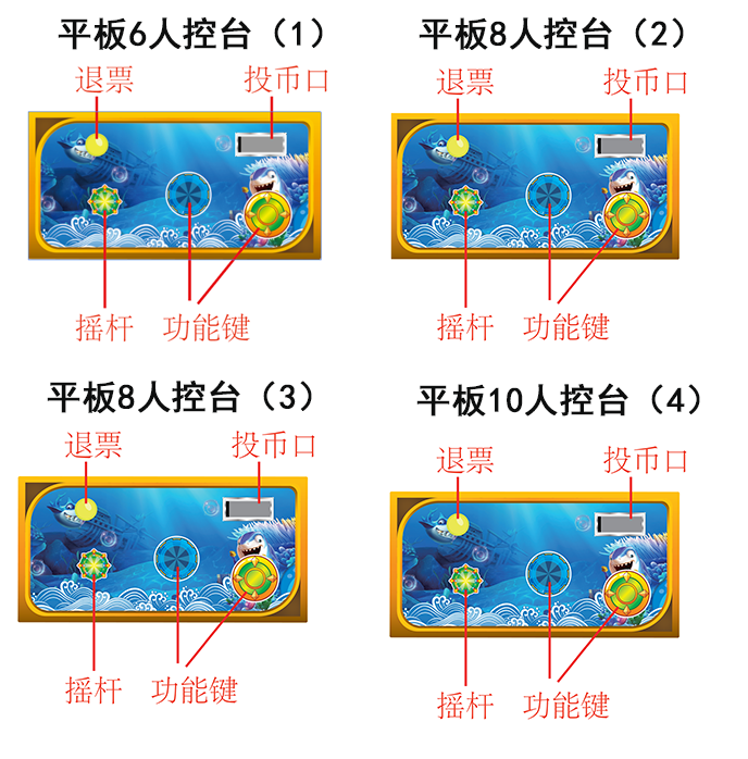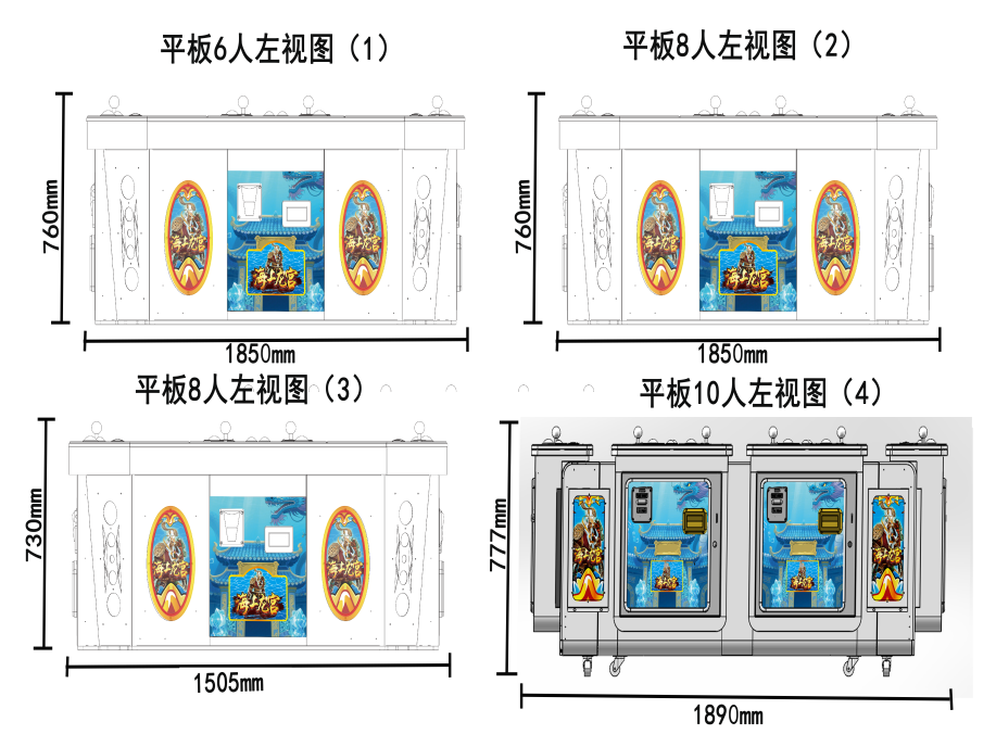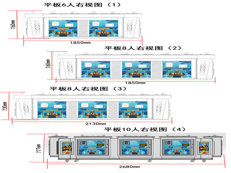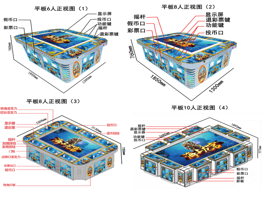 游戏内容简介 | 《海上龙宫(平板6/8/10人)》是一款模拟射击类游戏游艺彩票机,本机支持合法合规的管理系统,也可通过打开微信或支付宝扫一扫管理系统卡头二维码/屏幕二维码/实体二维码扫码支付投币或投入实体游戏代币等方式获得对应的能量积分,为方便客人游玩,便于主管部门监管,本设备可以扫码投币以及获得电子彩票或积分,积分可以到周边商家及线上商城消费(具体按当地主管部门要求来执行)。为响应文市发【2016】26号文件内容:“鼓励娱乐场所与互联网结合发展,实现场内场外、线上线下互动,增强娱乐场所体验式服务”的要求,本设备通过物联网技术可把实体游戏游艺设备的内容,推送到移动端供客人游玩,限于从实体设备所在游艺场所的公众号、小程序、APP及网络推广平台入口进入的客人游玩,不向全网开放。玩家在游戏中作为猎人的角色,可射击到多达30种海洋鱼类,包括大眼鱼、小丑鱼、河纯、狮子鱼、乌龟、旗鱼、灯笼鱼、蝴蝶鱼、斑斓鱼、石斑鱼、魔鬼鱼、美人鱼、金鲨、白鲨、小鲸鱼,飞鹰,深海鳄鱼、虾兵、蟹将、龙王、琵琶宫娥、火箭等,游过深海、珊瑚、海底的各种奇幻世界。除了让你感受绚丽多彩,缤纷有趣的海底世界外,还能享受到捕获多种鱼儿的惊喜。 本游戏画面逼真、新奇;游戏操作简单、直观;游戏中有诸多的小游戏;同时游戏有很炫的特效,给玩家带来视觉享受。游戏操作简单有趣,最终按照玩家捕获数量获得彩票奖励,提供给玩家一个趣味十足的游乐世界,适合成人及亲子娱乐。 本游戏画面逼真、新奇;游戏操作简单、直观;游戏设备超高清晰液晶显示屏,无论是画面精致细腻程度,或者是颜色的协调,还是光影投射的效果,都逼真的近乎完美,加上美妙的音乐,有各种海底生物在休闲游戏,音乐轻柔衬托,给玩家带来有身临其境感觉。玩家在游戏的过程中可欣赏到海底生物们在海底追逐互动所带来的自身的真实感受。体验射击游戏精彩带来的喜悦,让玩家回味无穷。提供给玩家一个趣味十足的游乐世界,适合成人及亲子娱乐。 | ||